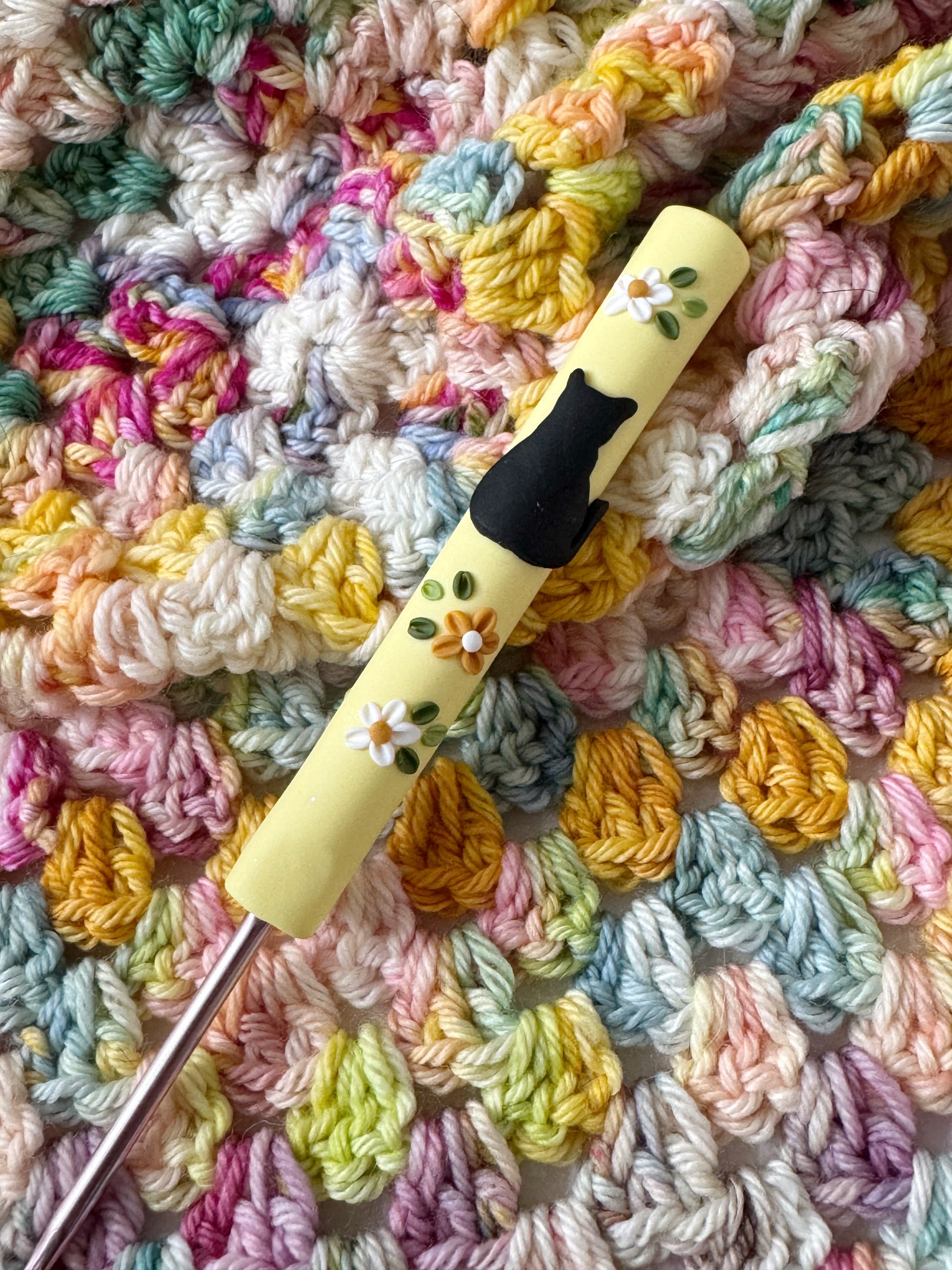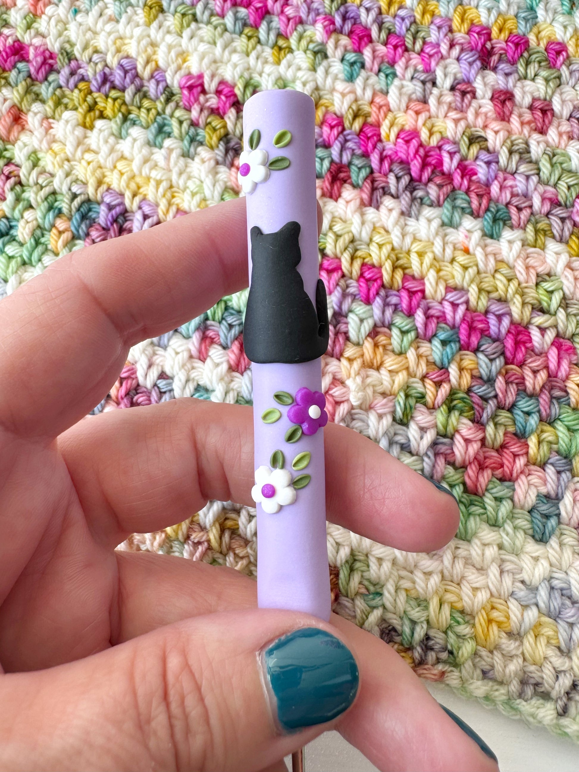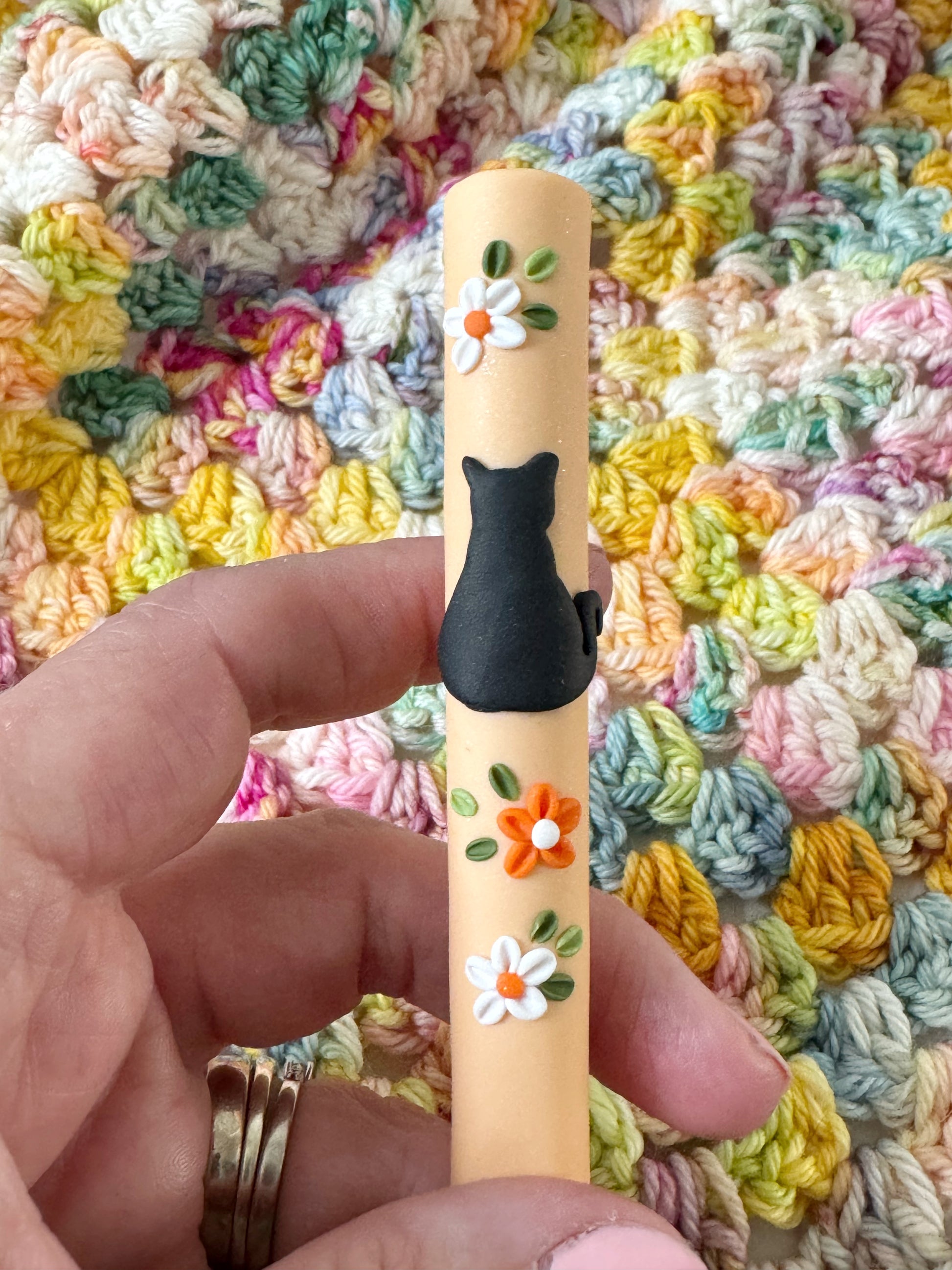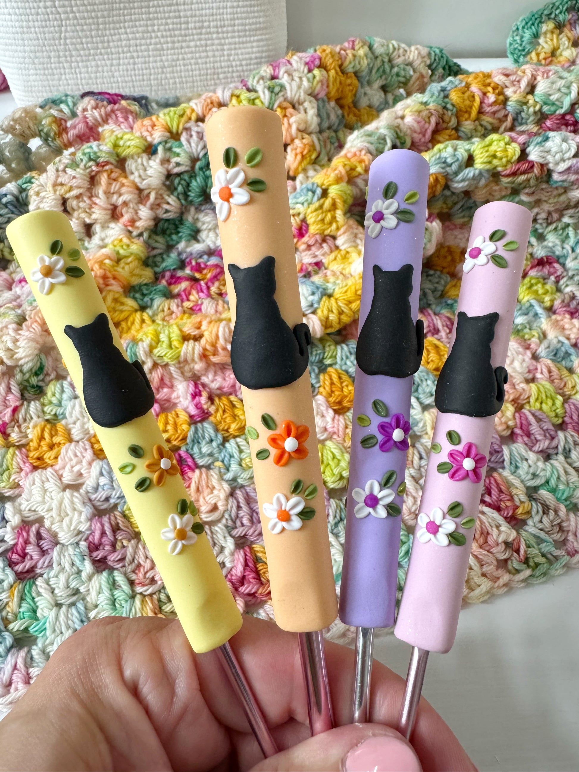 Black Cat Crochet Hook, Polymer Clay Kitten Crochet Hook