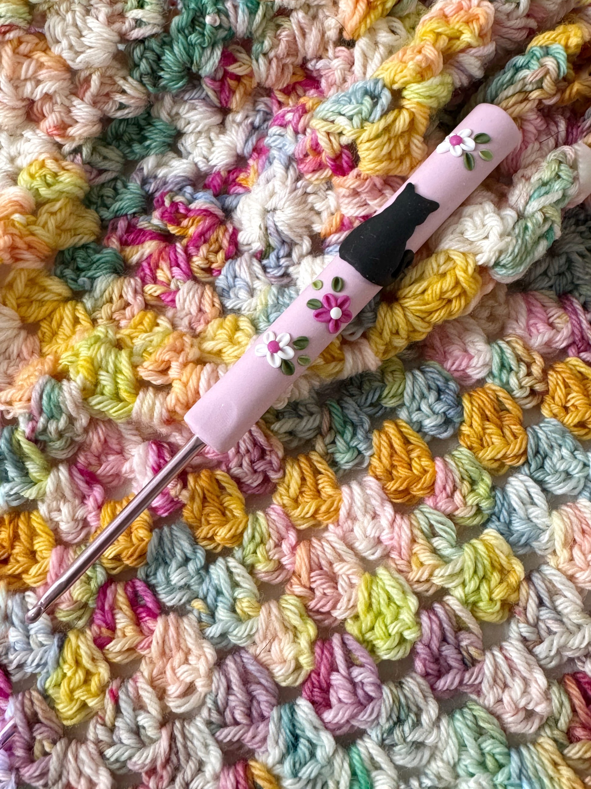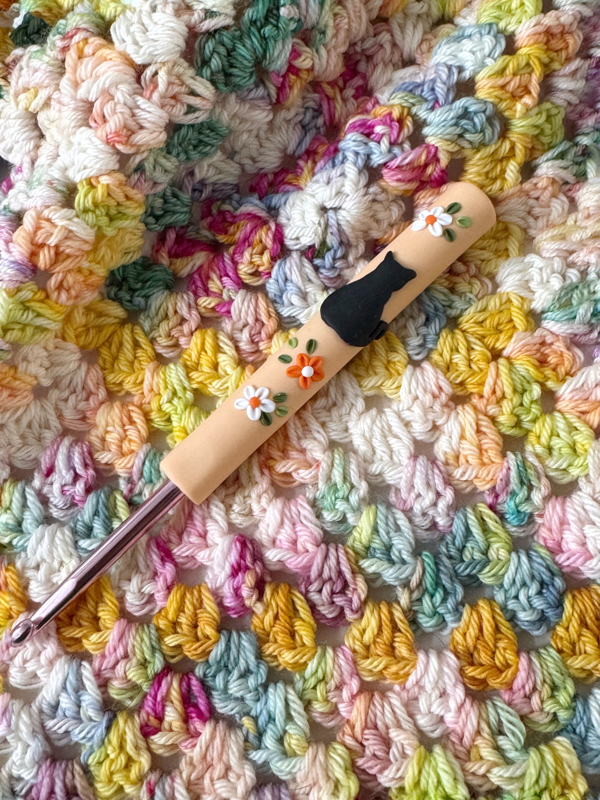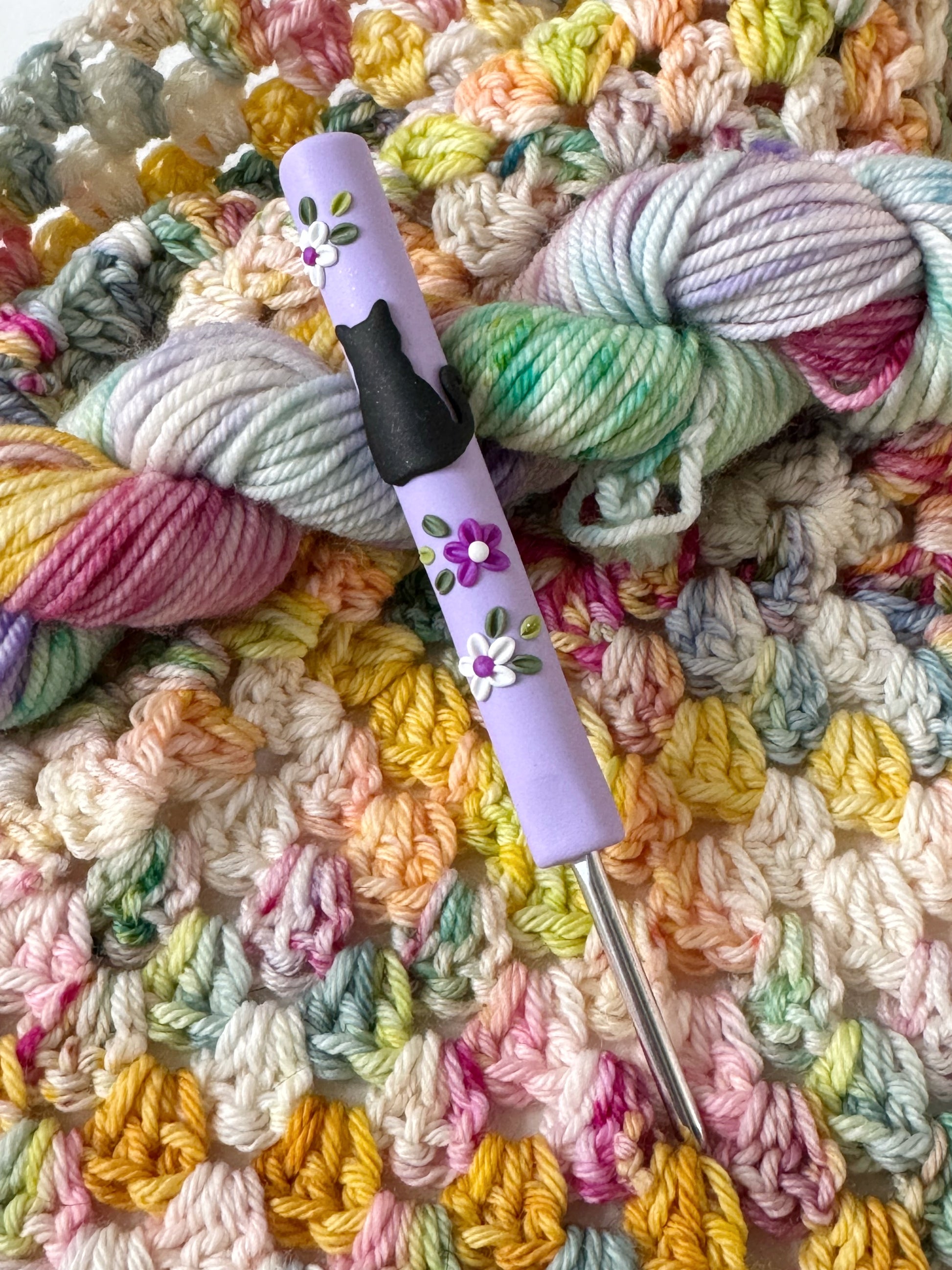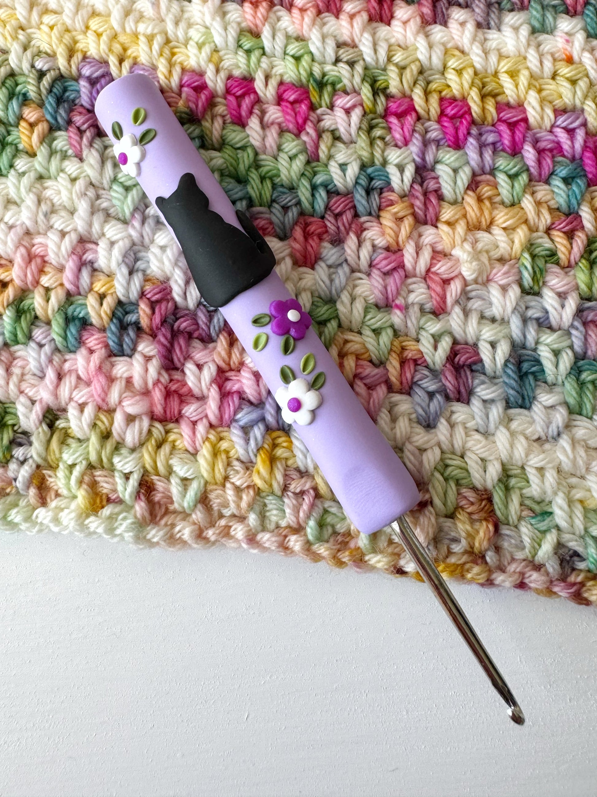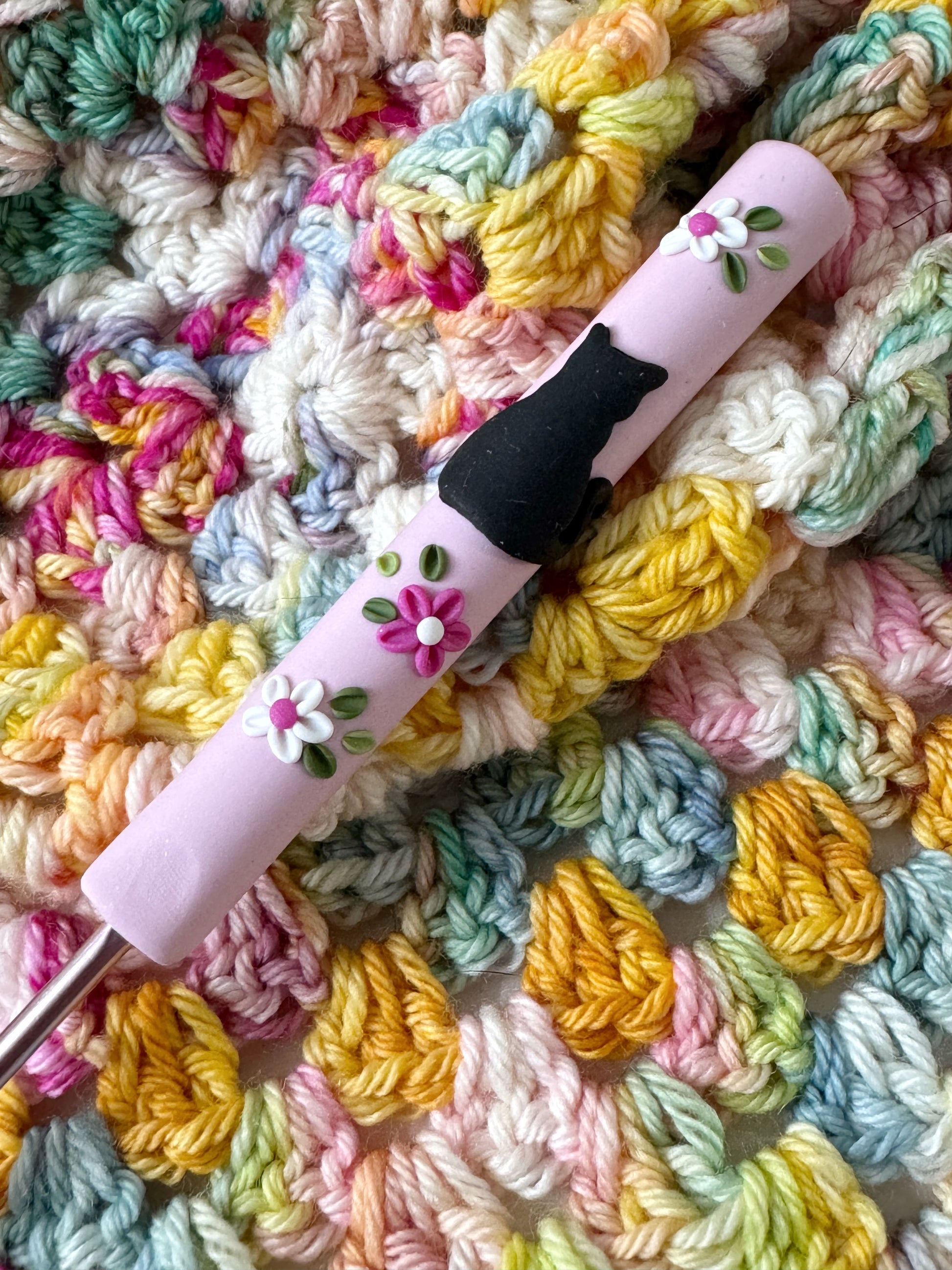 Black Cat Crochet Hook, Polymer Clay Kitten Crochet Hook