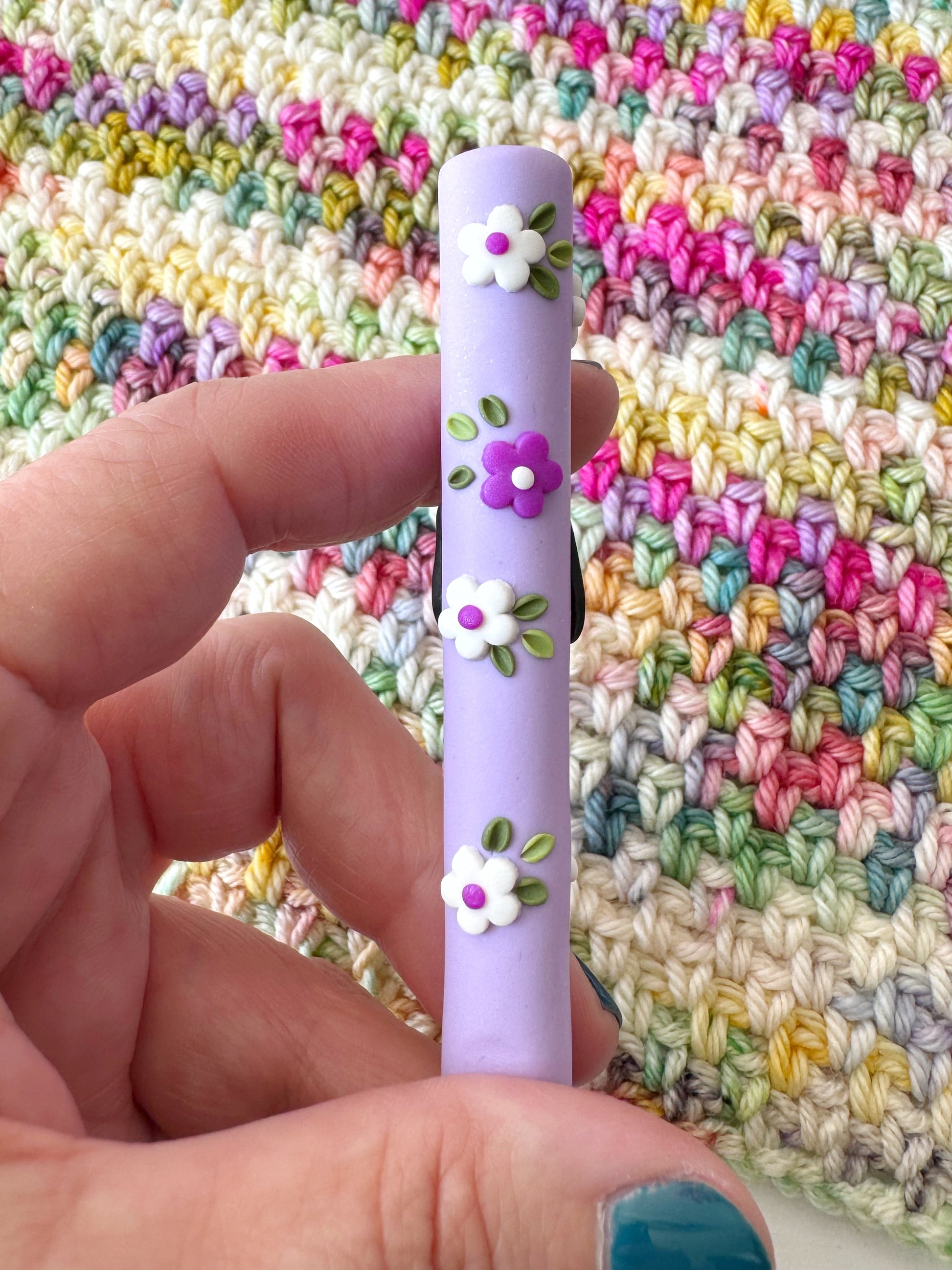 This is a tapered aluminium book with a smooth polymer clay base. It features a cute black cat silhouette and is finished with my signature tiny flowers and leaves. Available in a range of base colours, just choose your favourite and leave the rest to me!