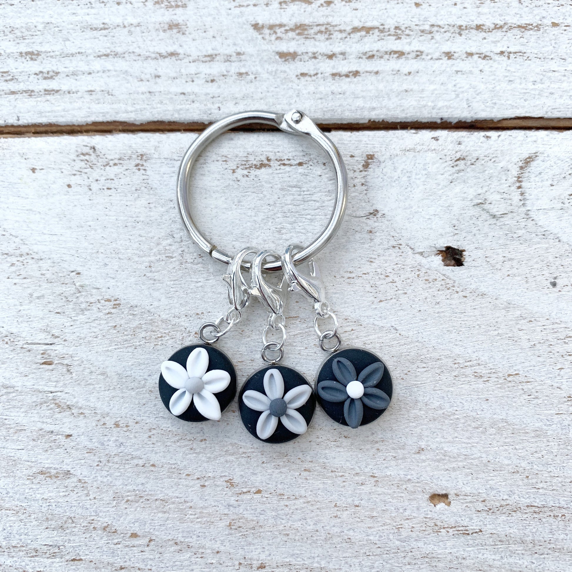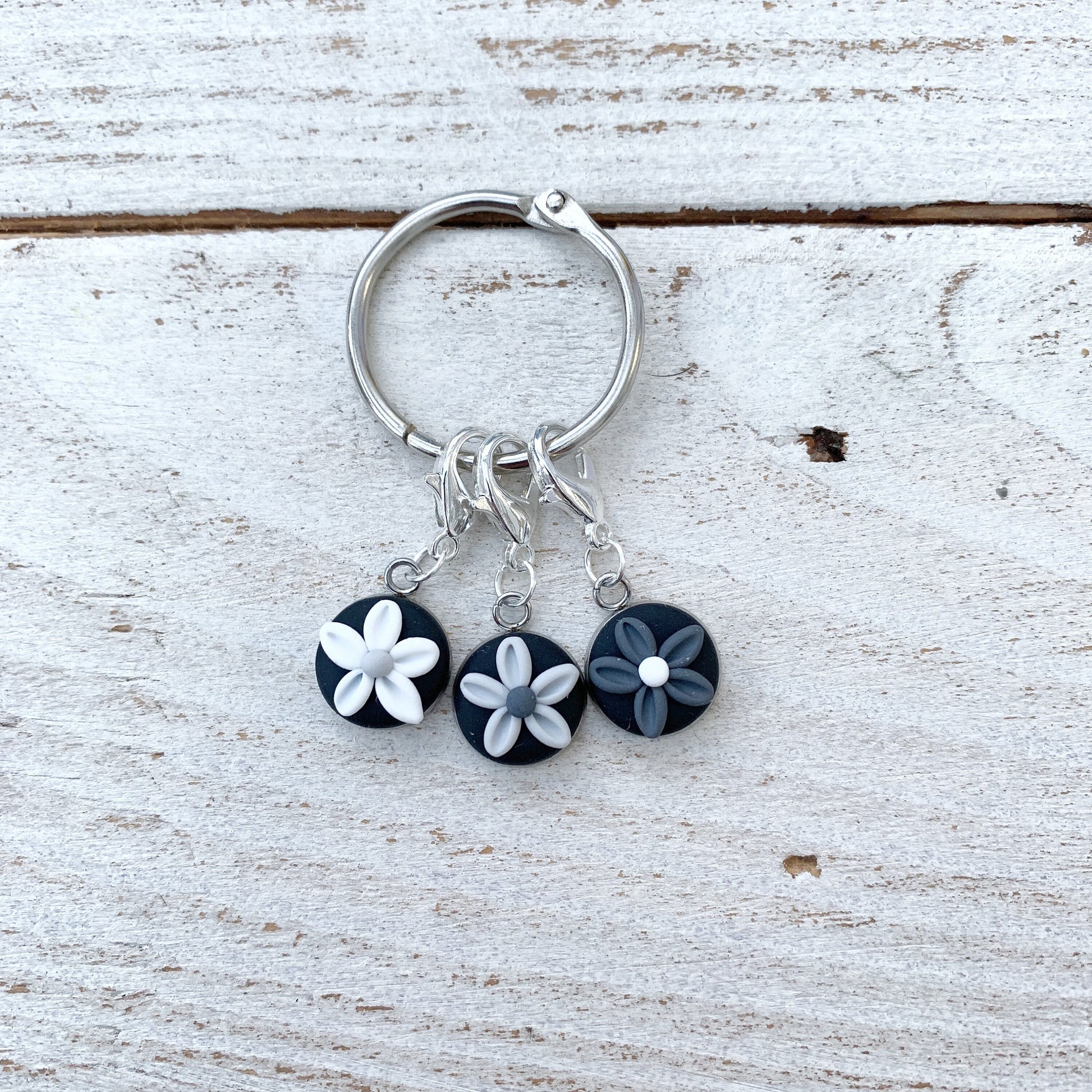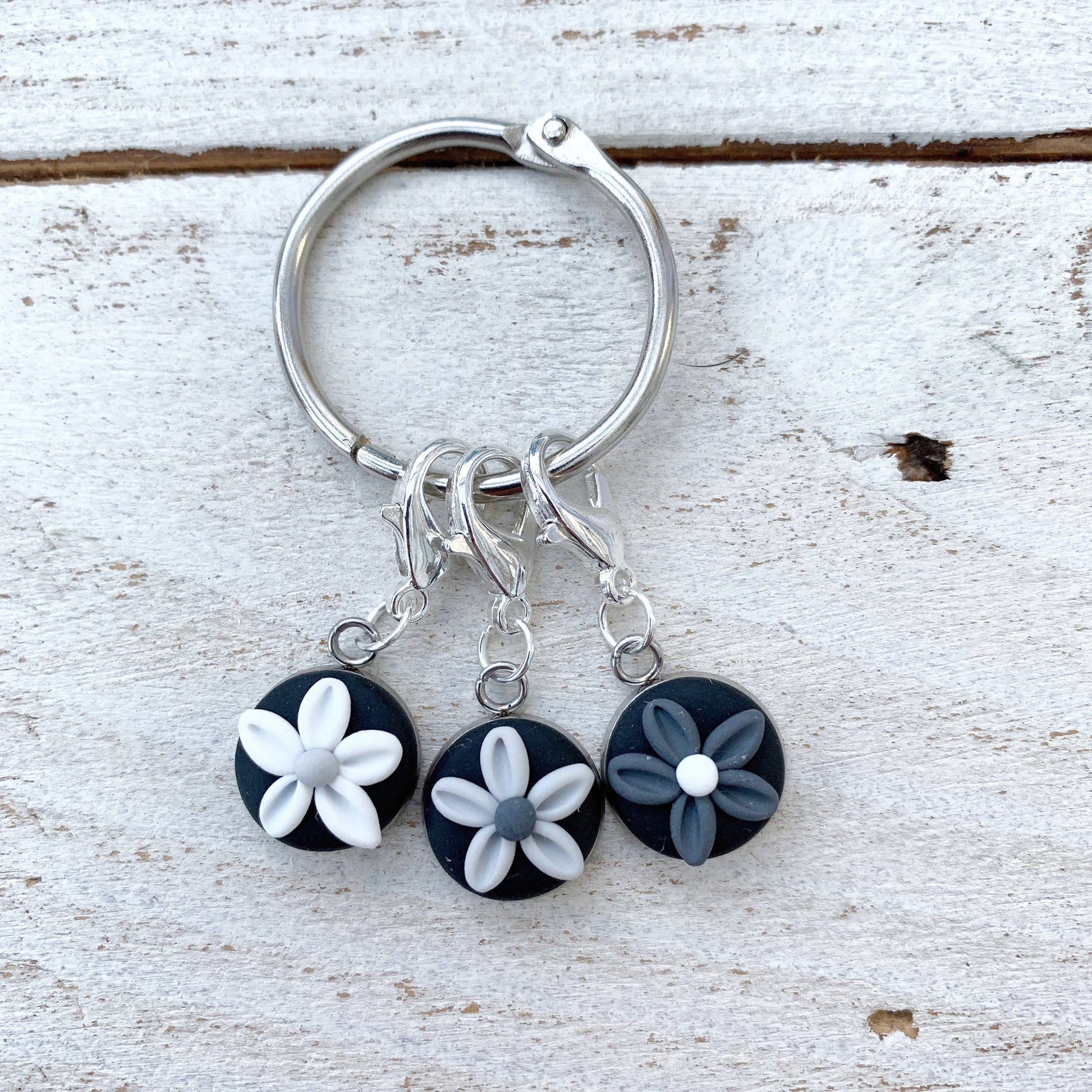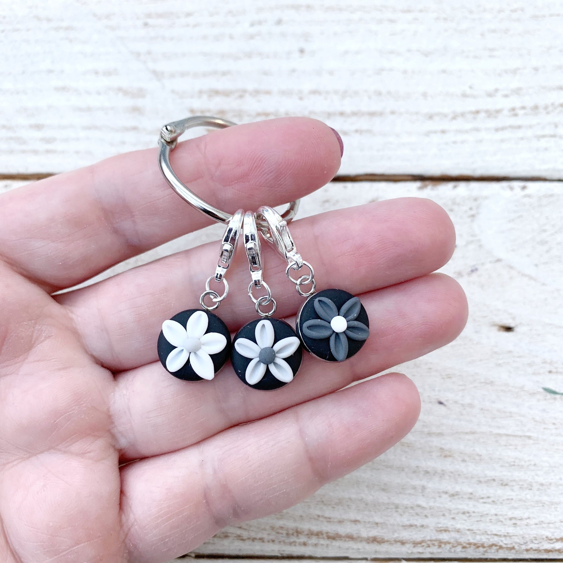 Follow your pattern with ease using these pretty handmade polymer clay flower stitch markers.