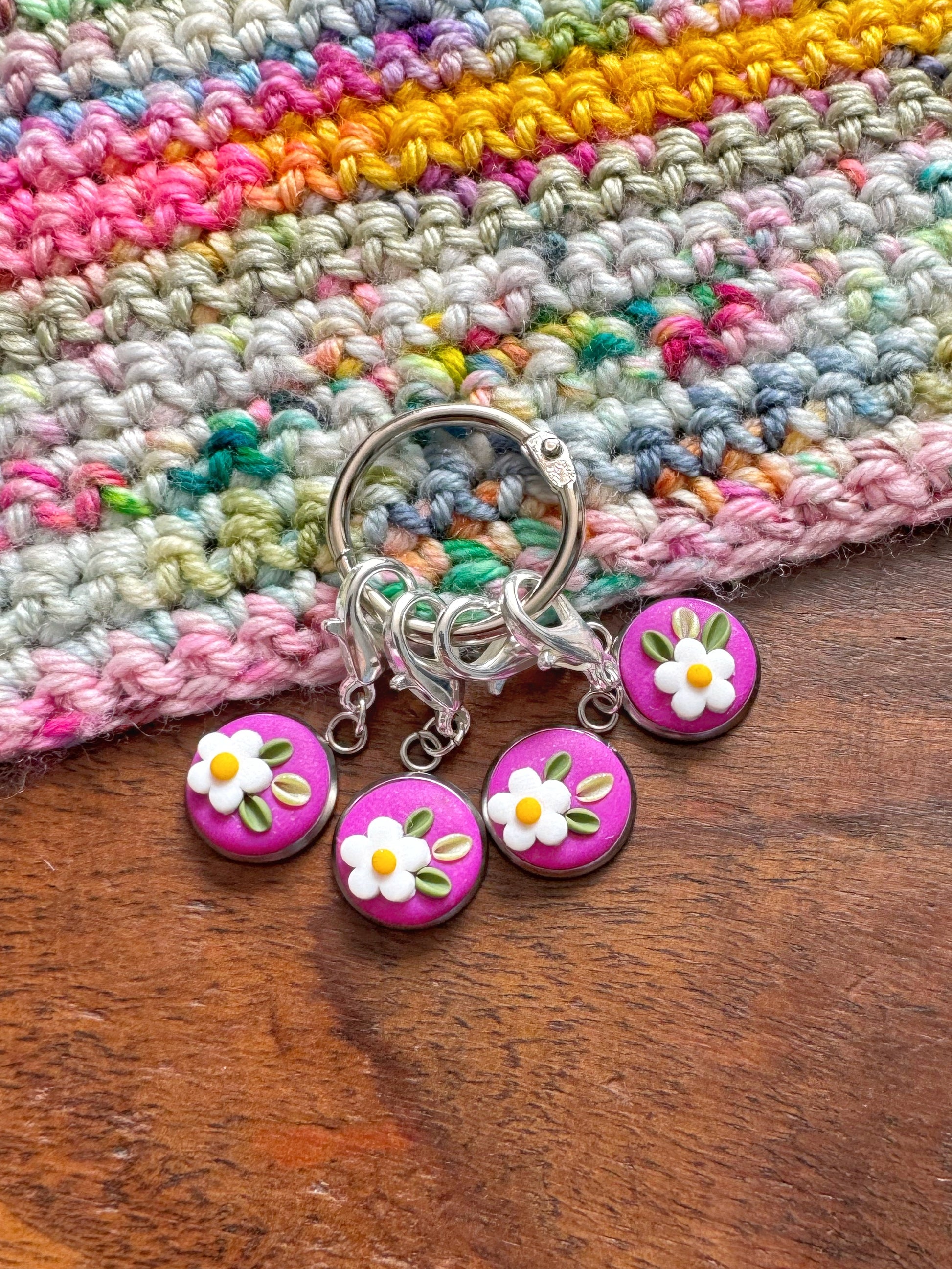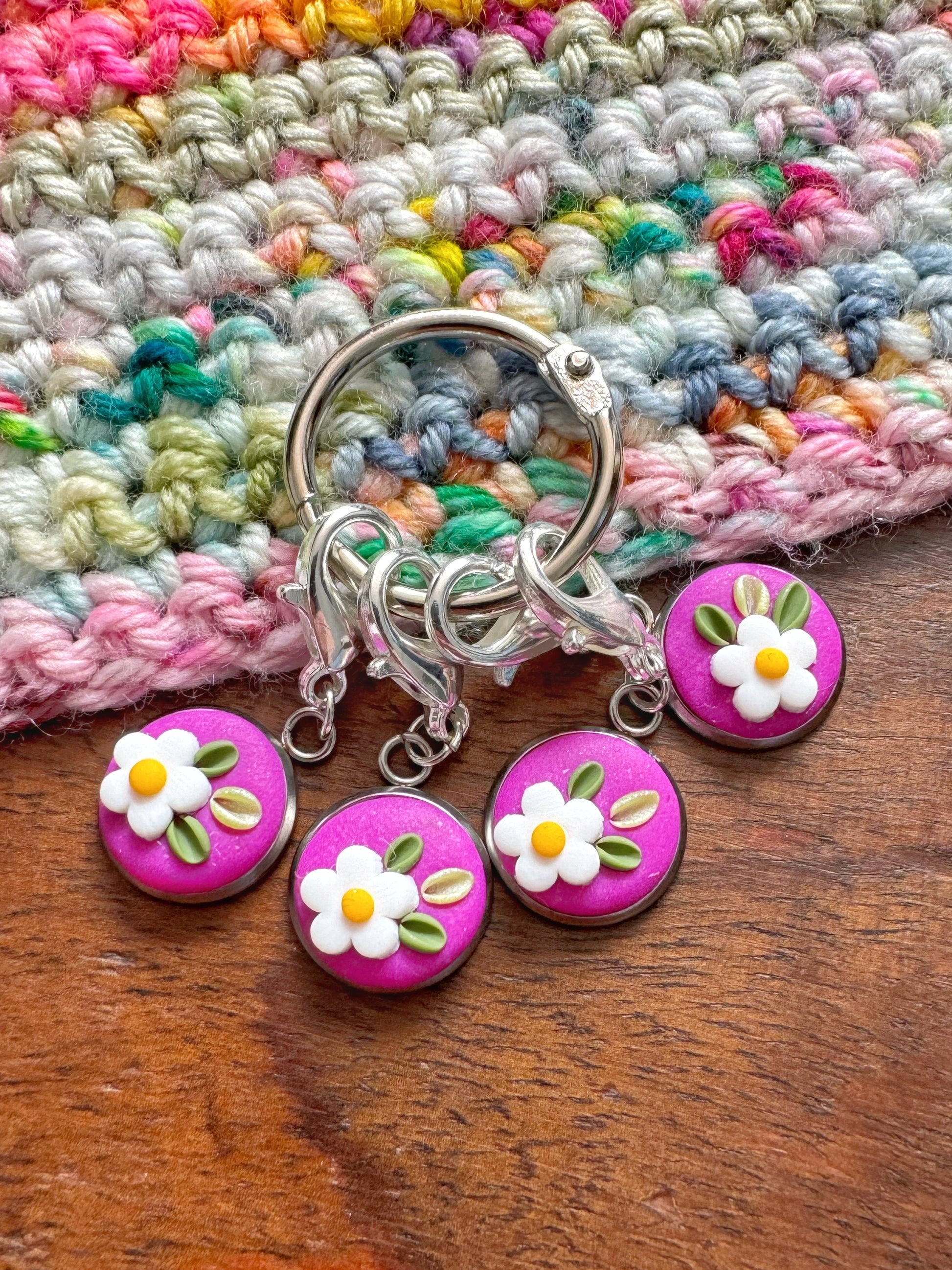 Follow your pattern with ease using these pretty and practical handmade polymer clay flower stitch markers.