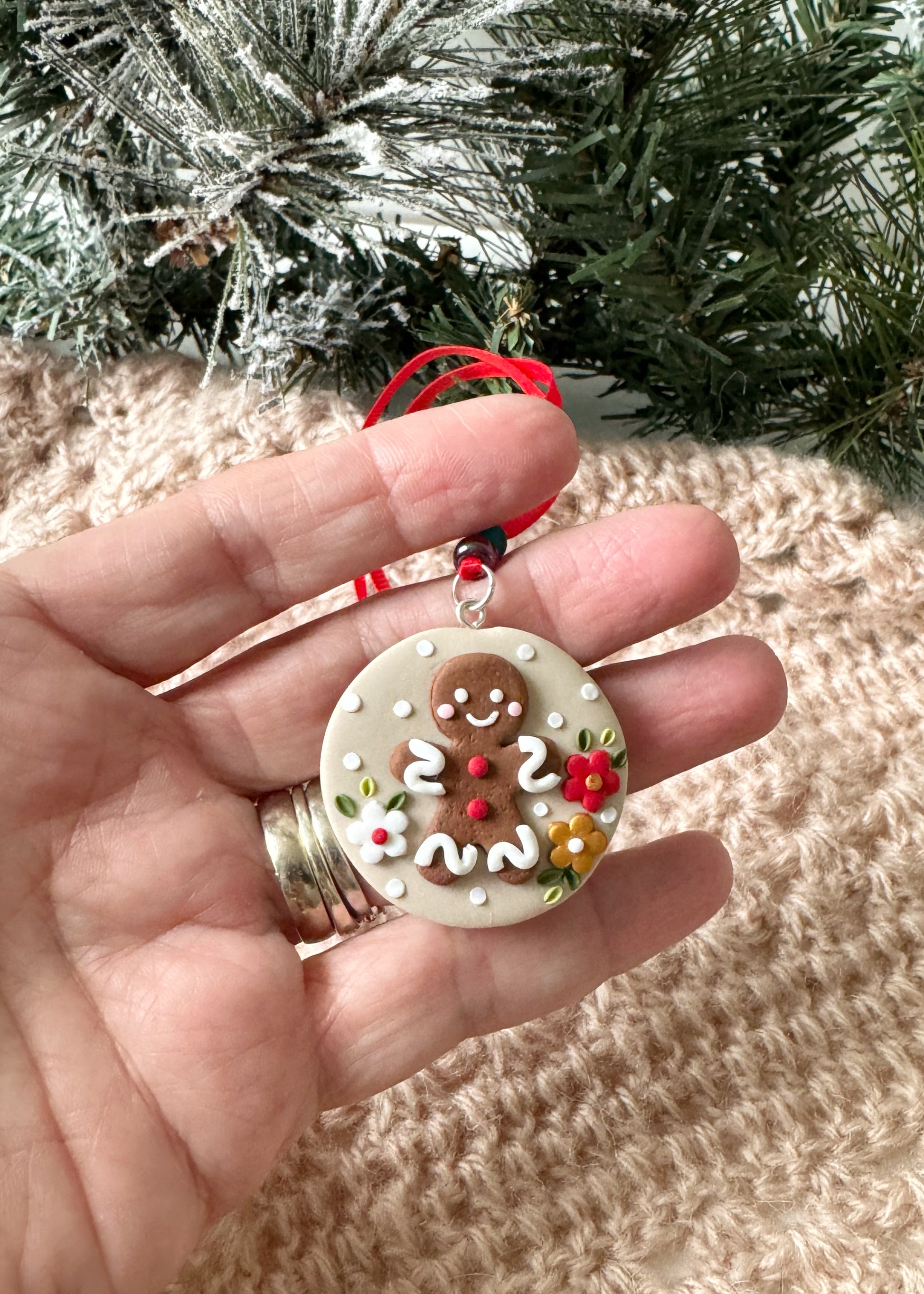 This fob features my 4cm base in a neutral beige. The little gingerbread man is packed with details and the whole thing is finished with my signature spots and flowers.