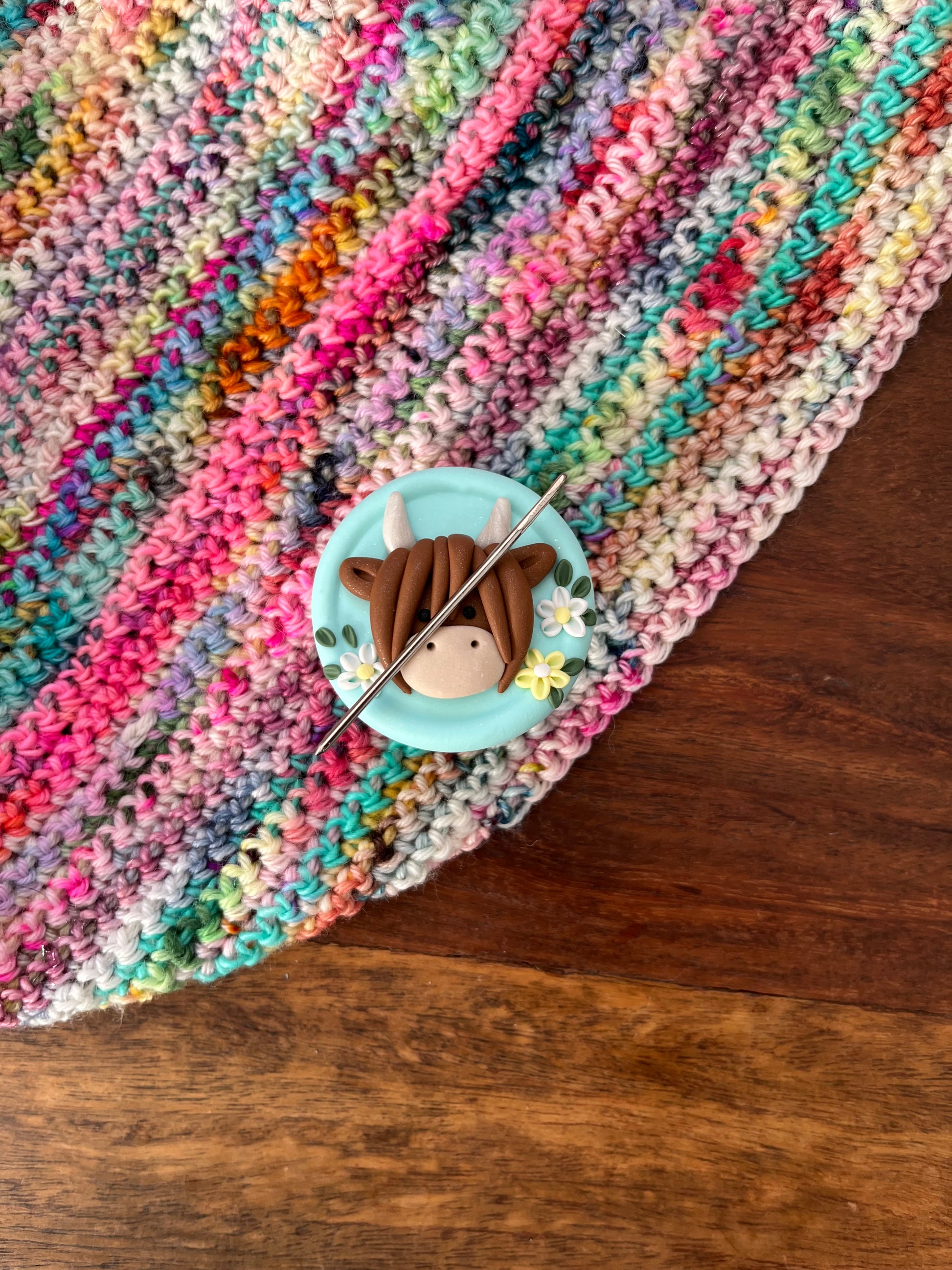 Mint green highland cow needle minder, heilan coo needle keeper, cross stitch crochet accessories, needle keeper, cross stitch magnet