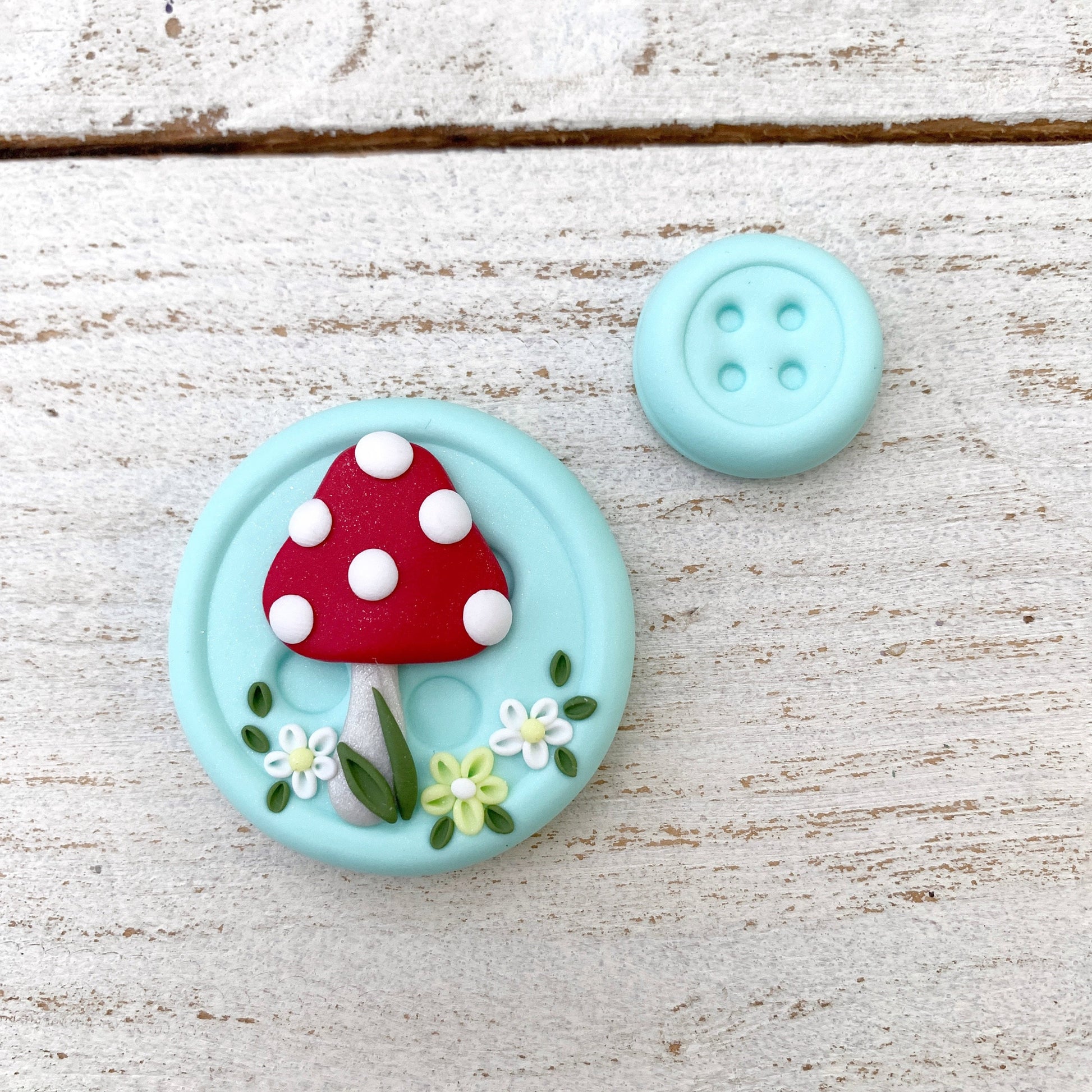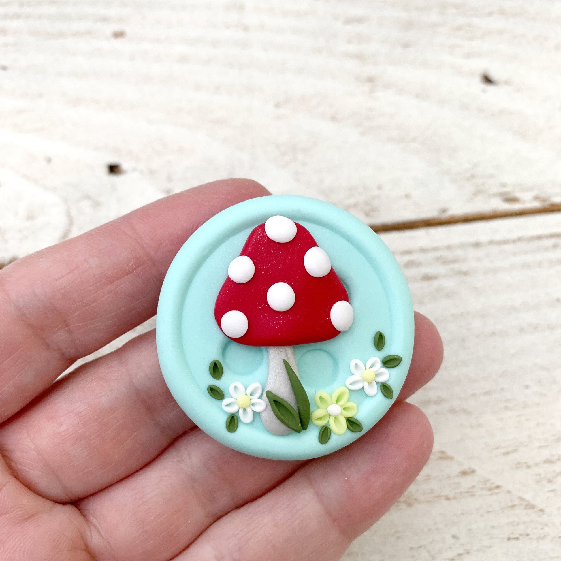 This needle minder features my signature 2” button base in a beautiful mint green. The mushroom design is all shaped by hand to create something pretty and unique that you will love to use.