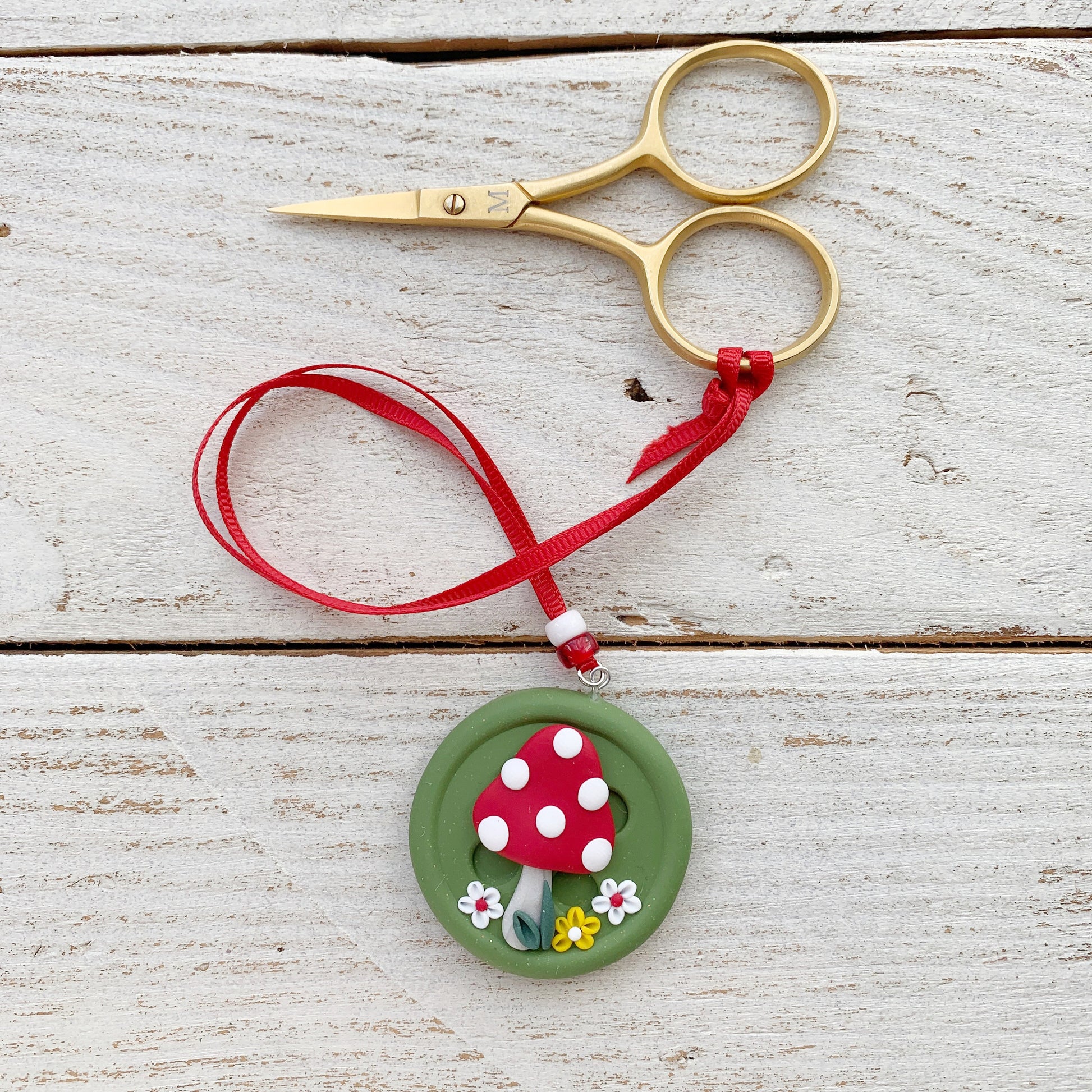 Mushroom scissor fob, scissor keeper, crochet tools, gift for her, photo props, cross stitch accessories