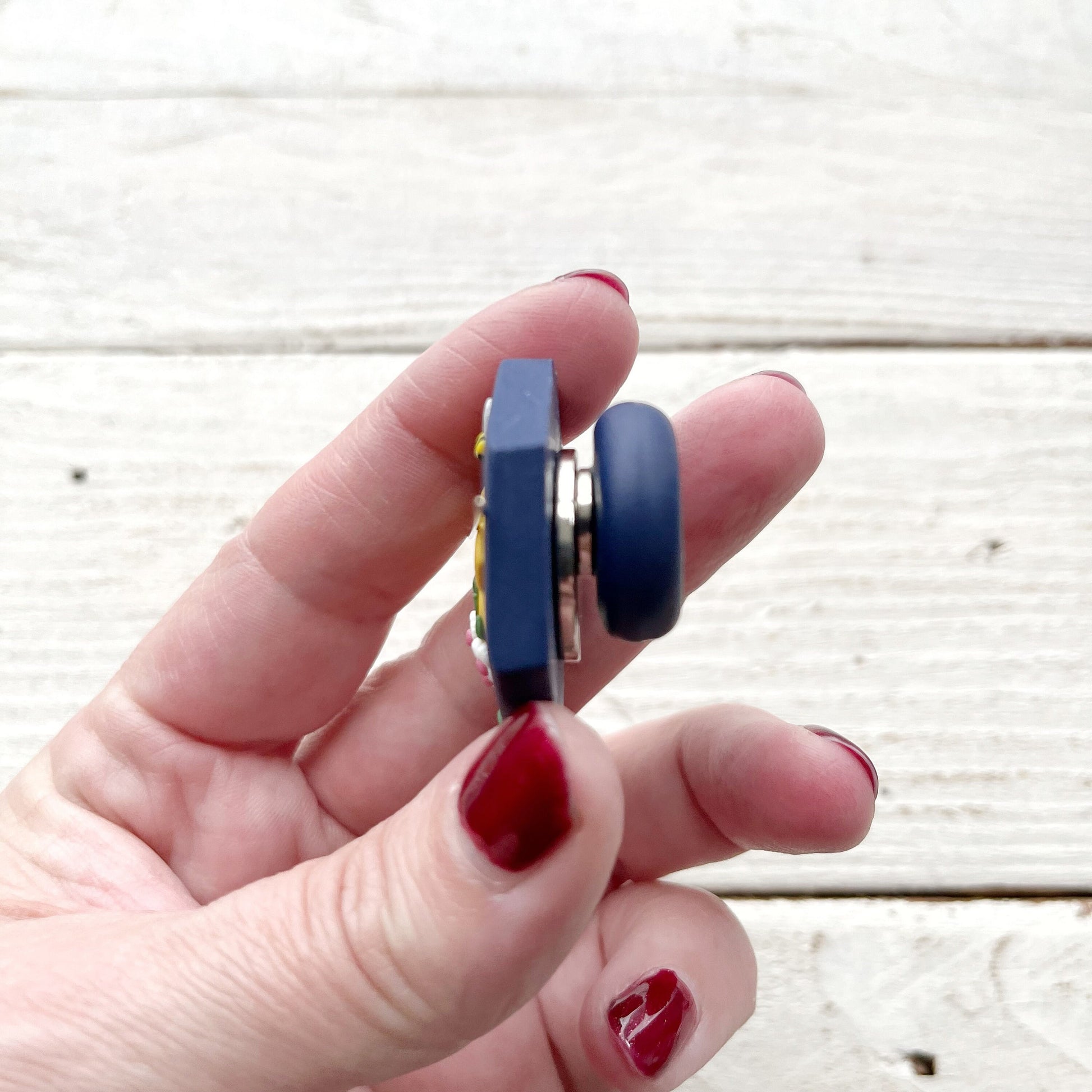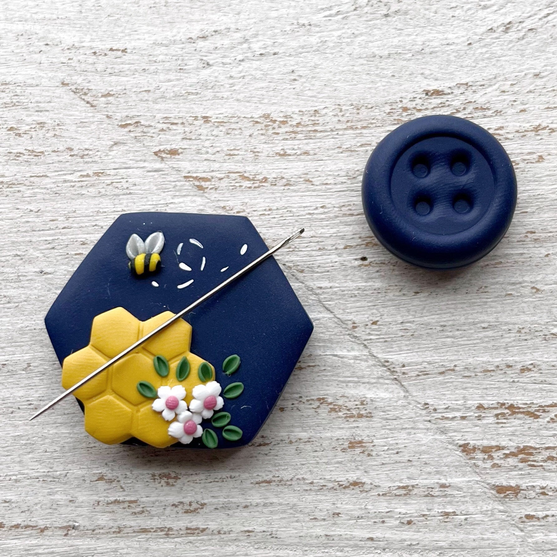 Navy hexagon bumble bee needle minder, sewing needle magnet, cross stitch embroidery needle holders
