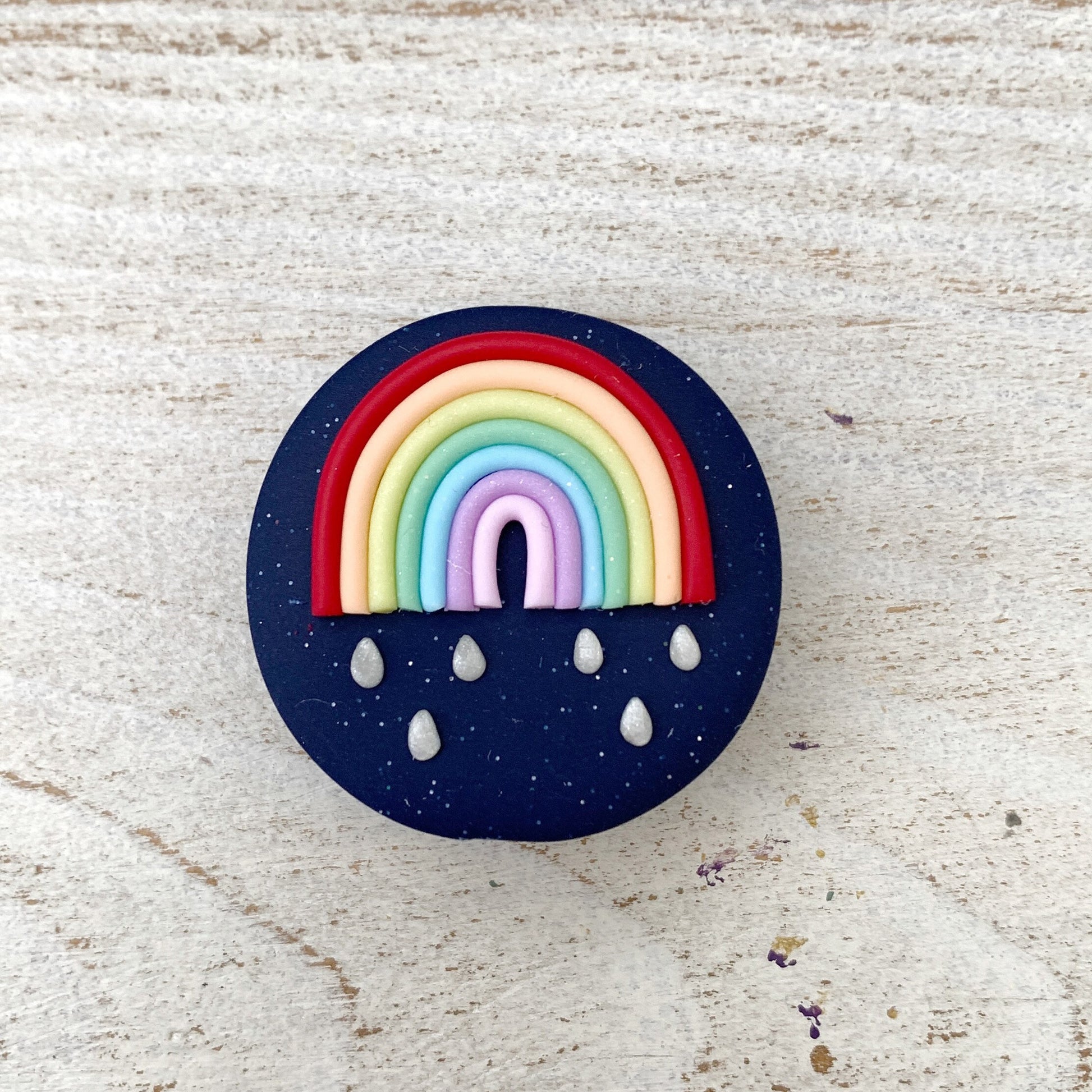 Navy rainbow needle minder, needle keeper, magnetic needle holder, rainbow magnet, magnetic brooch, pin holder
