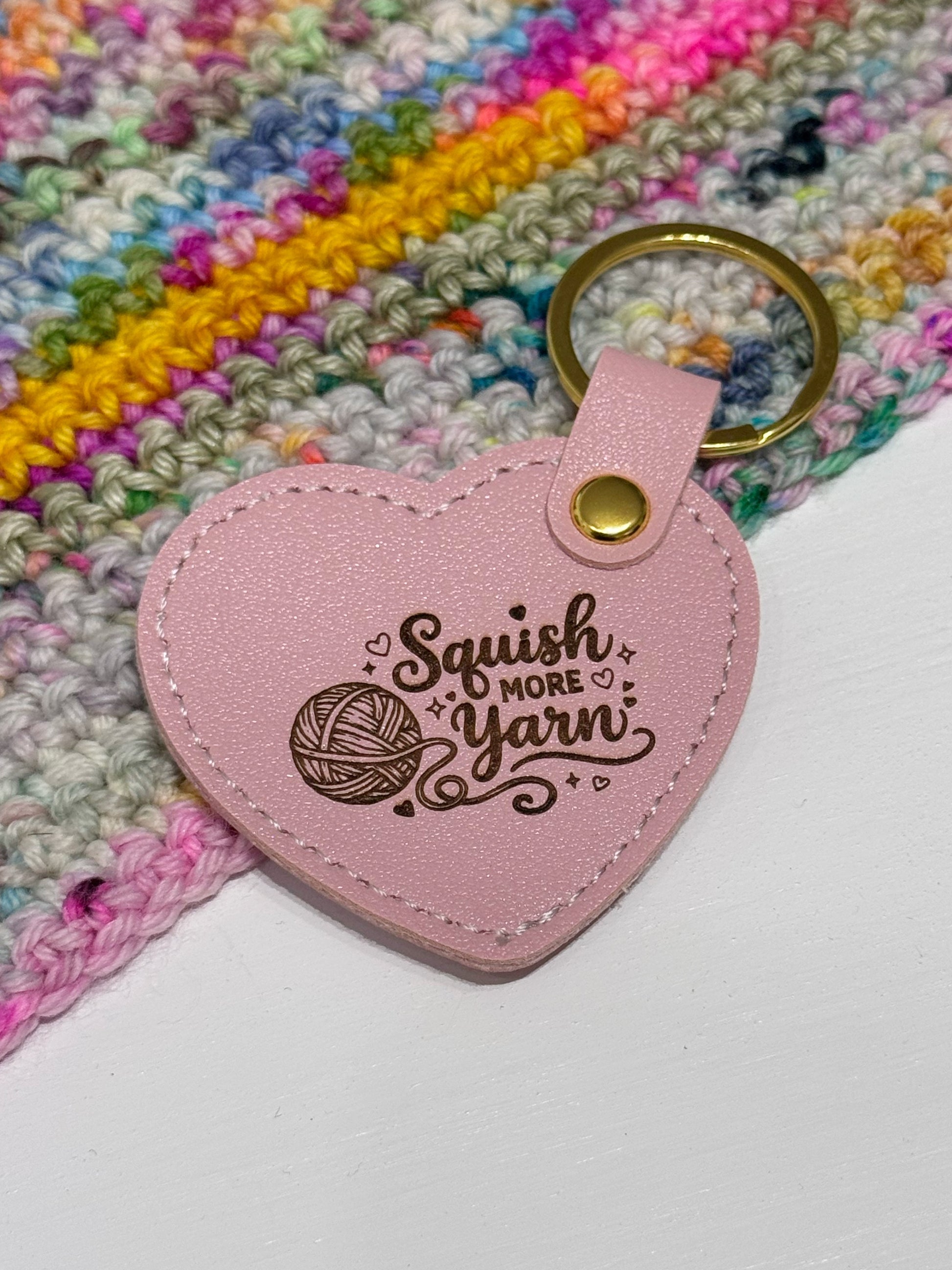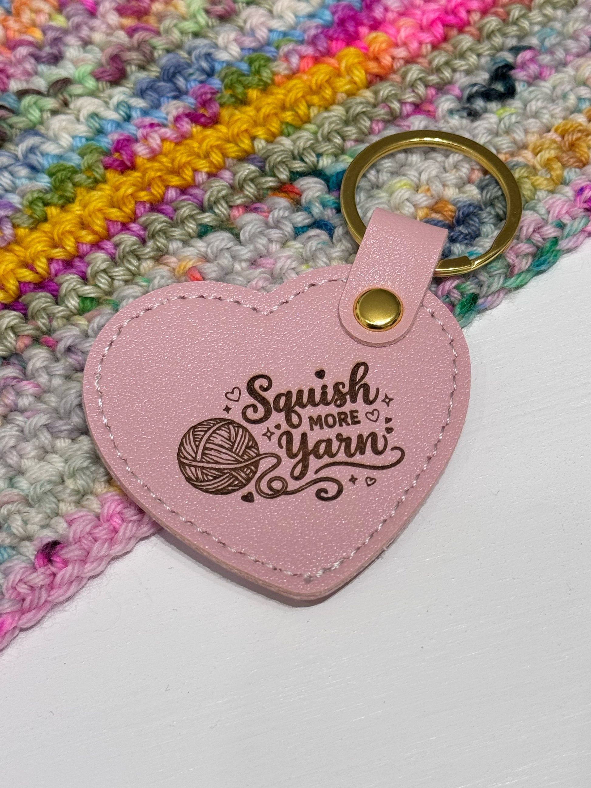 Pale Pink Faux Leather Heart Keyring – Yarn Lover Gift, Squish More Yarn
