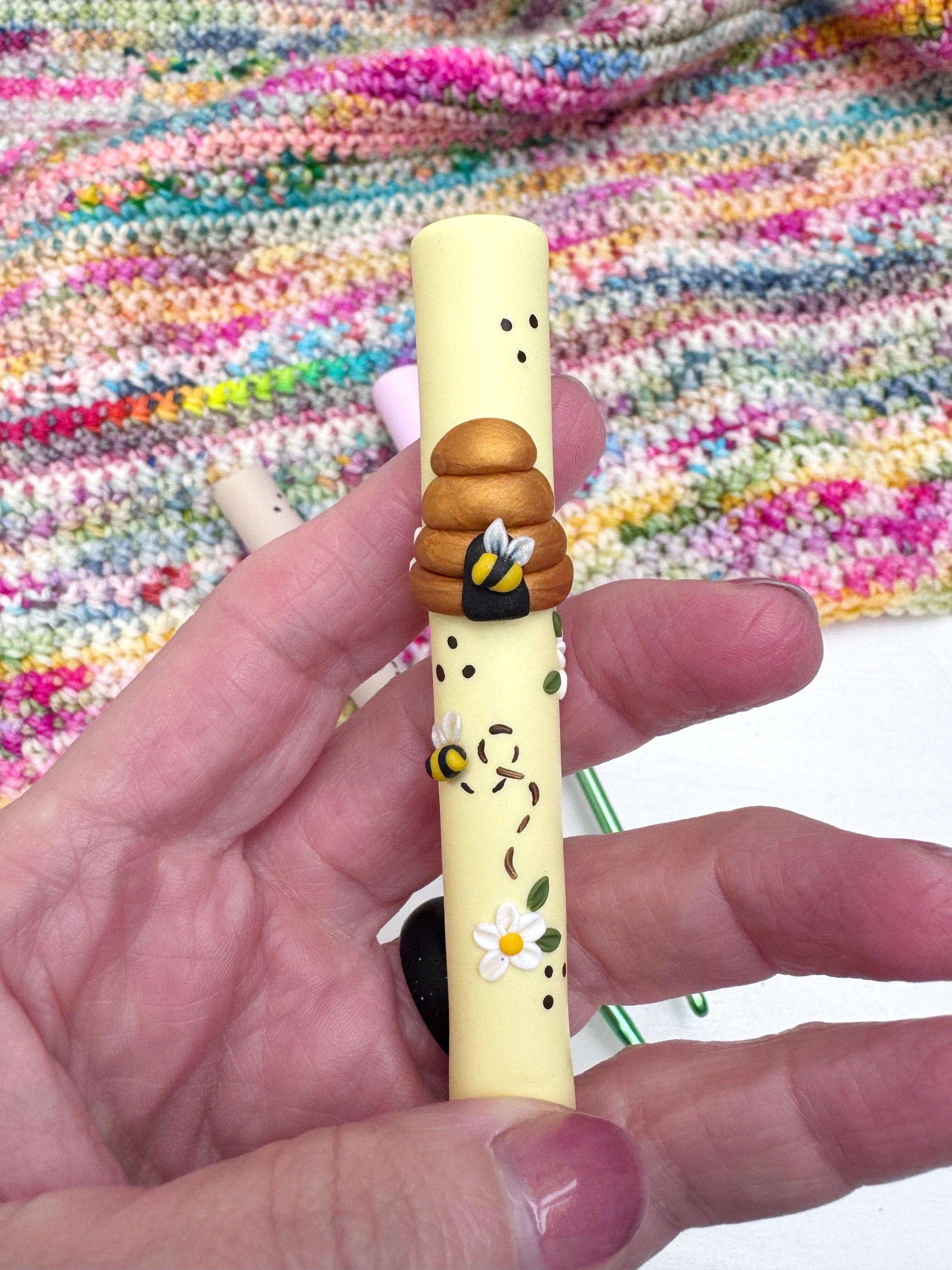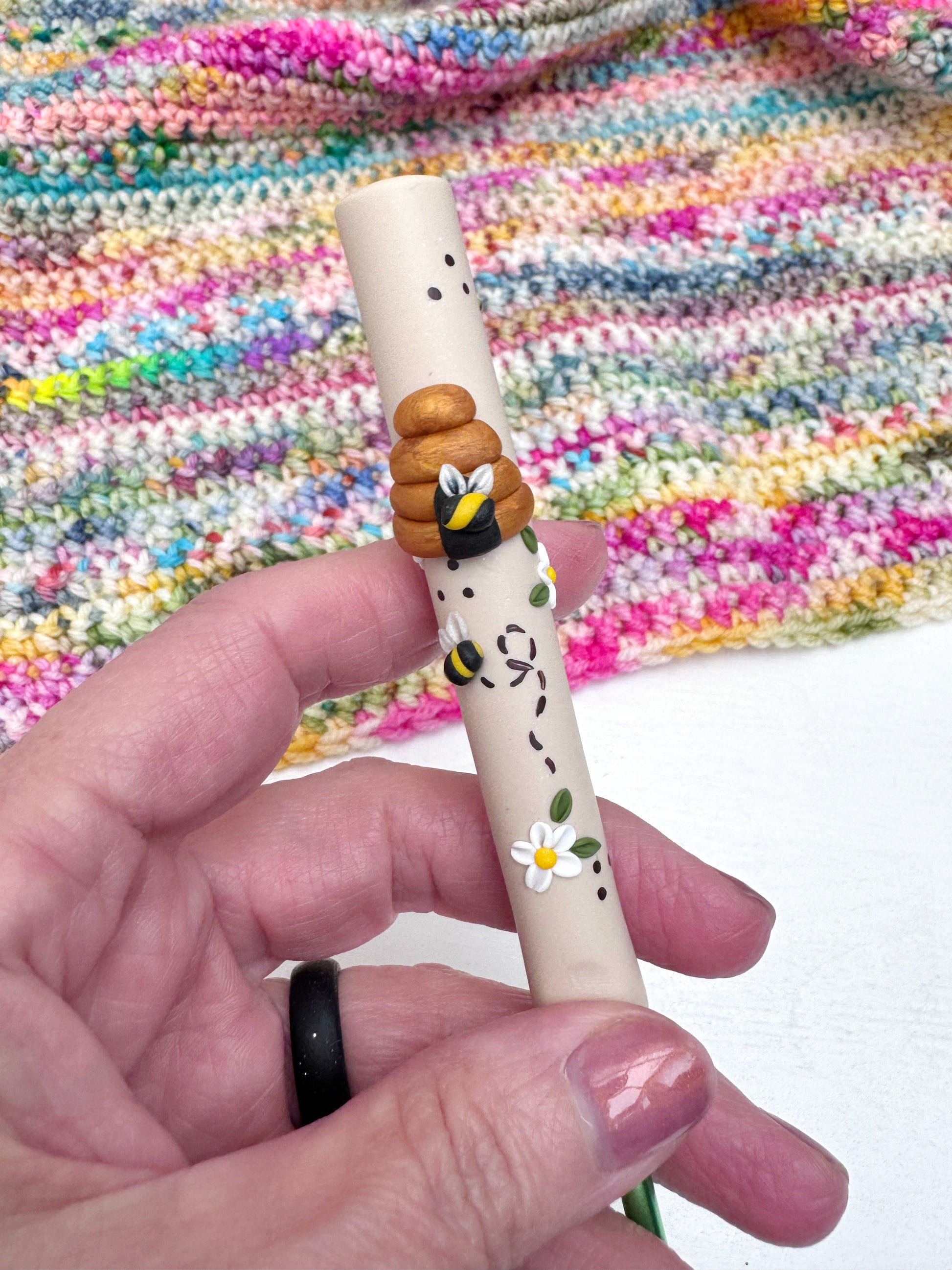 Beehive Crochet Hook, Polymer Clay Ergonomic Crochet Hook