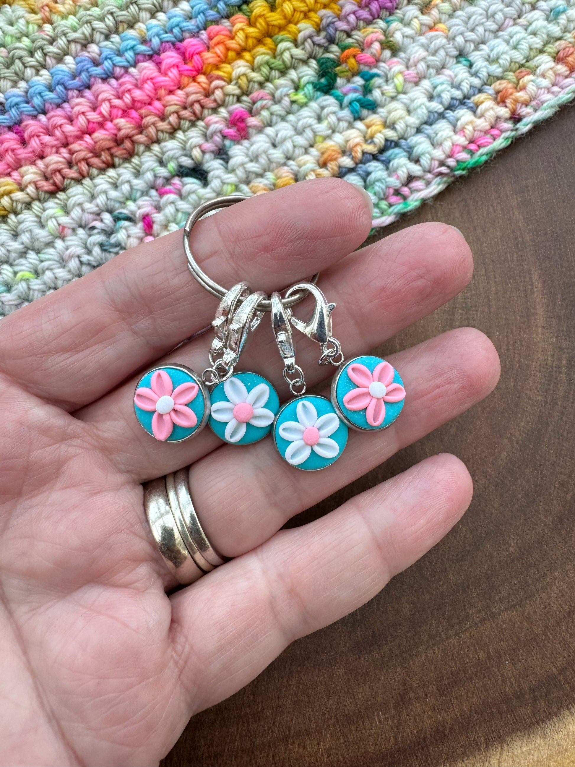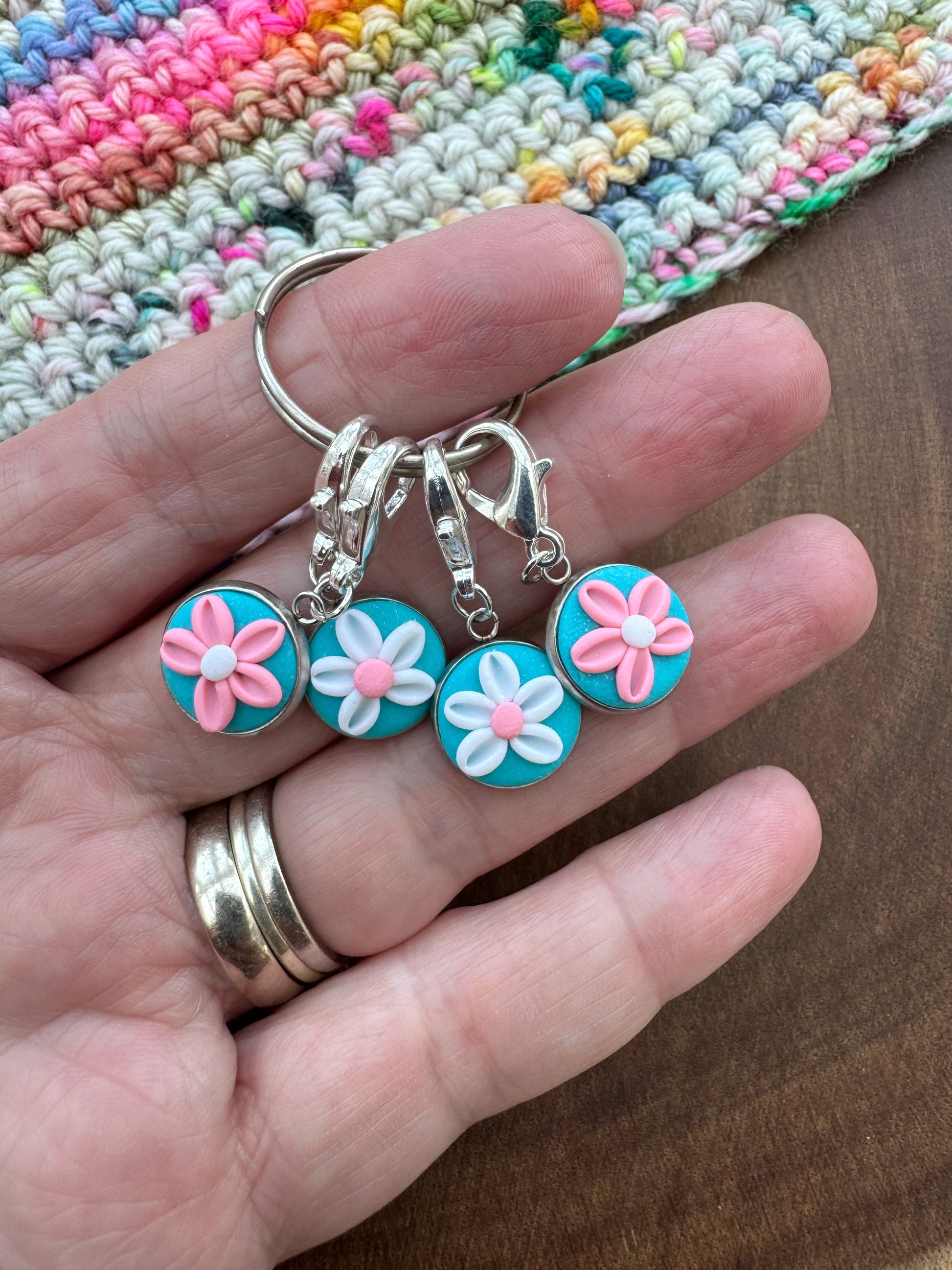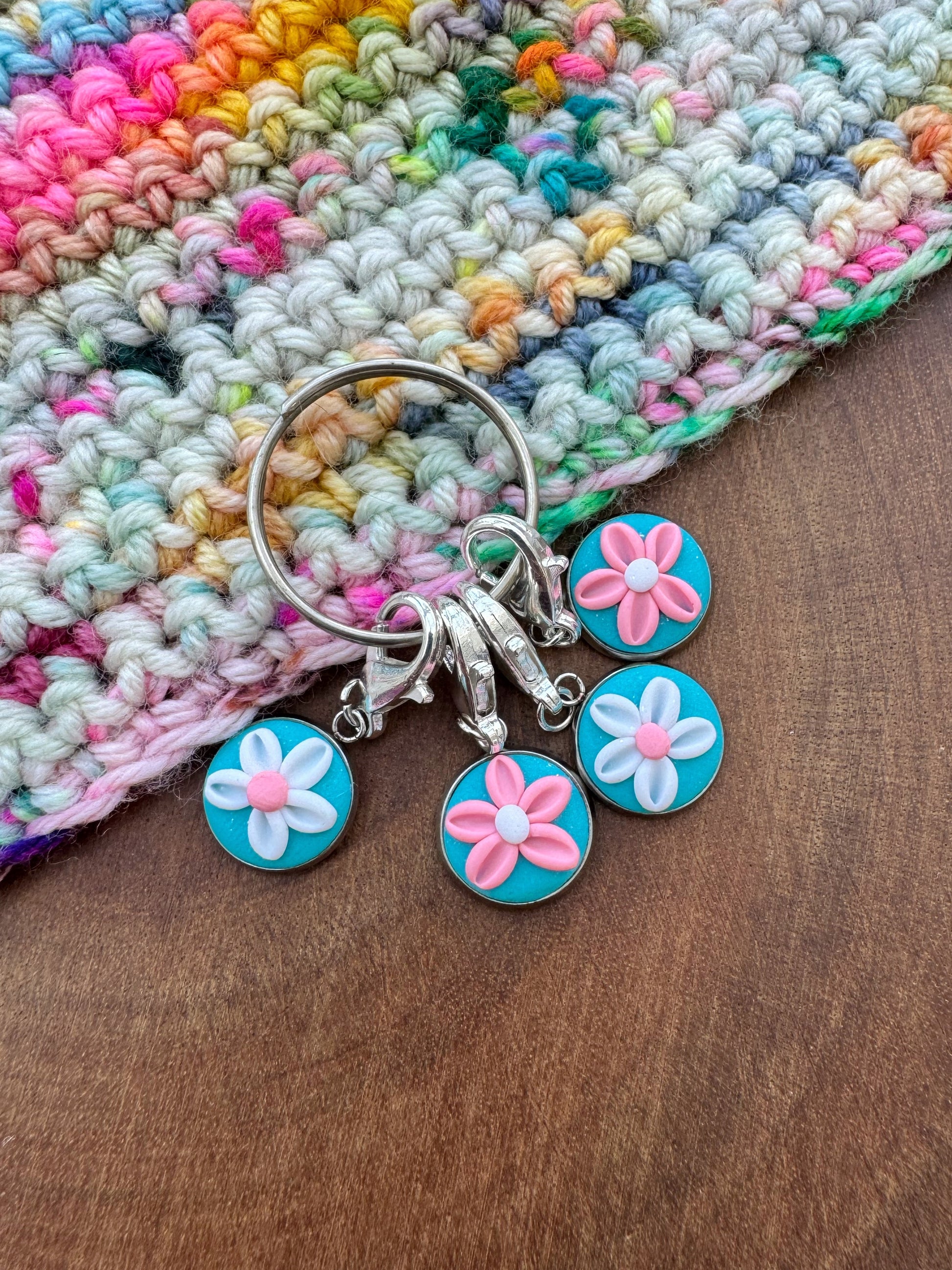 Pink and Blue Flower Stitch Markers, Flower Progress Keepers