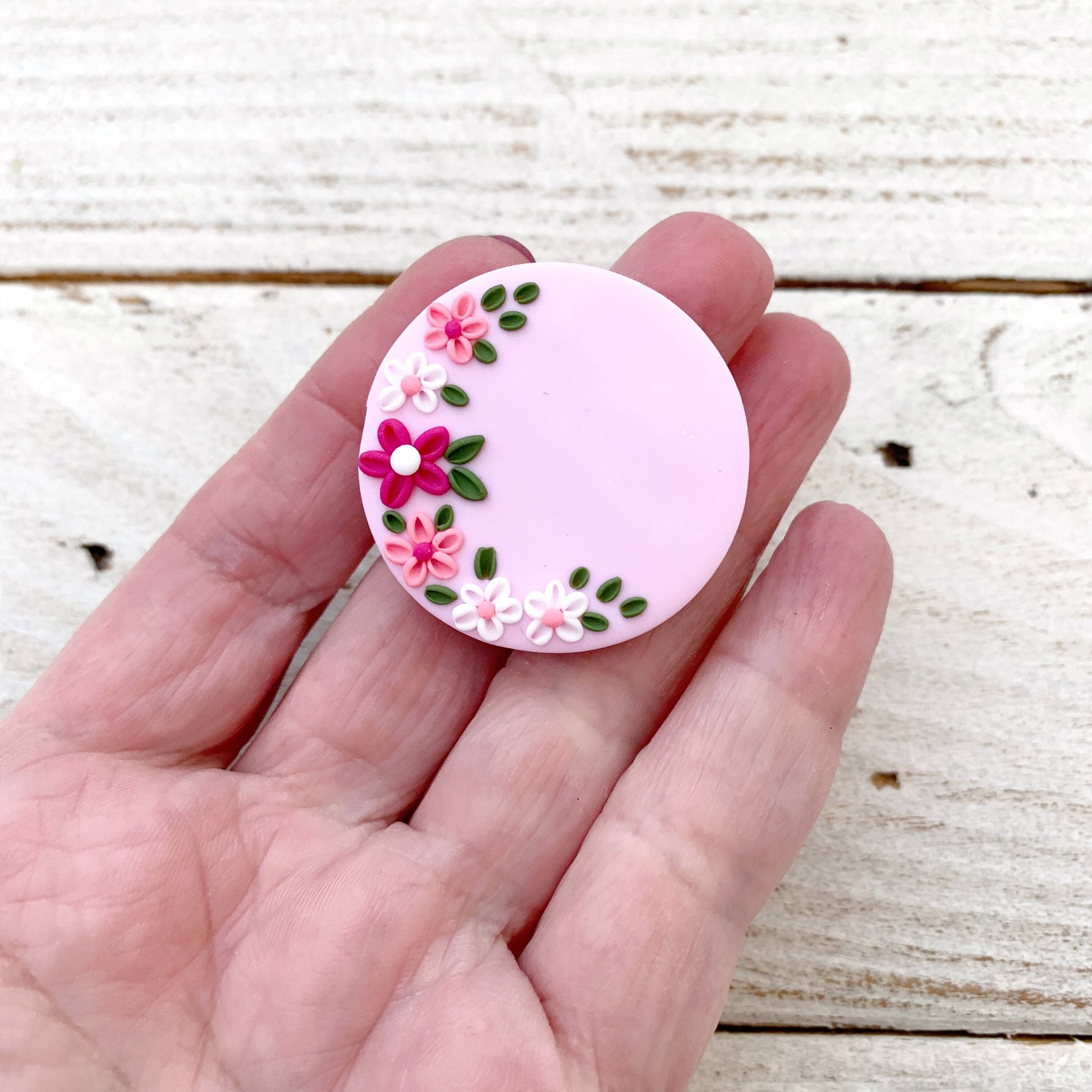 This needle minder features a delicate hand shaped flower design on a pale pink base. Each tiny petal and leaf are shaped by hand to make each one unique. This needle minder is part of my rainbow collection. You can find matching items listed separately.