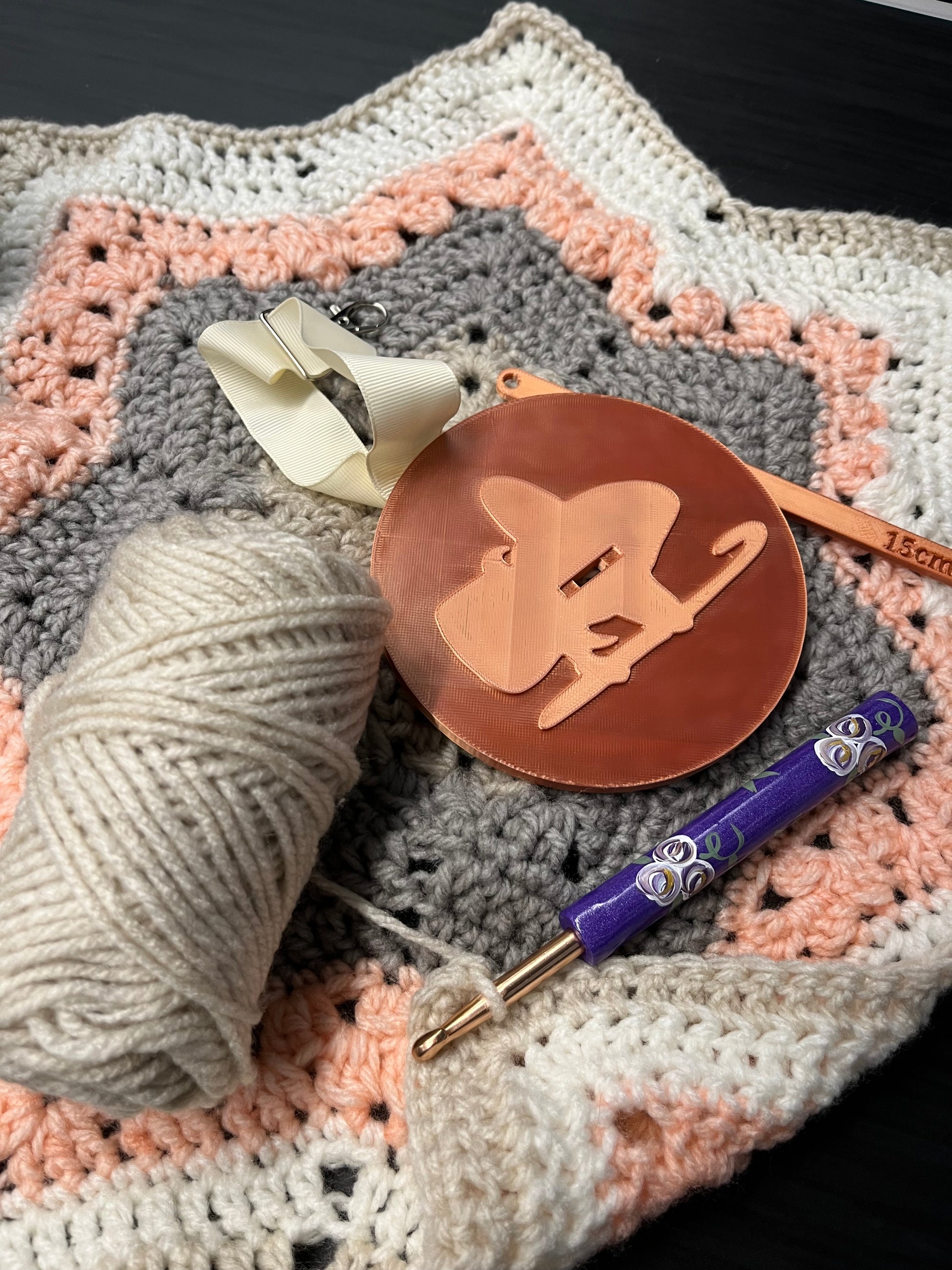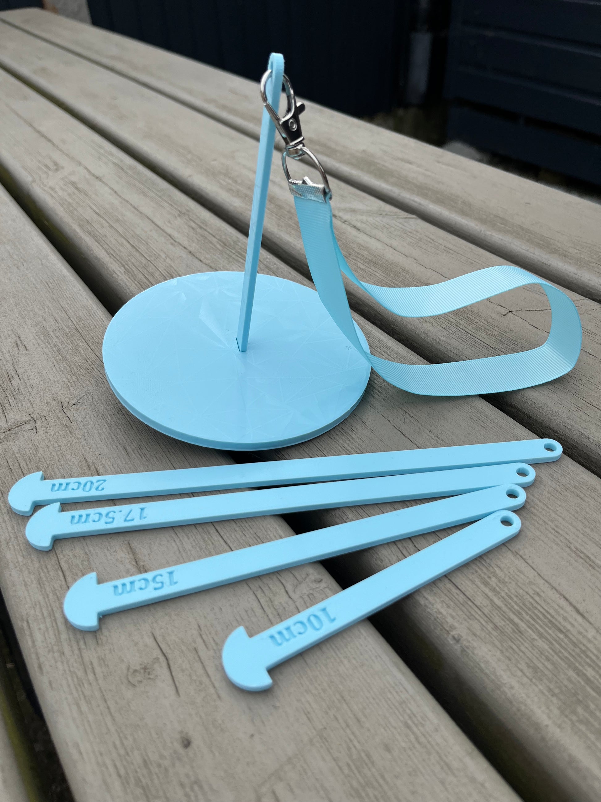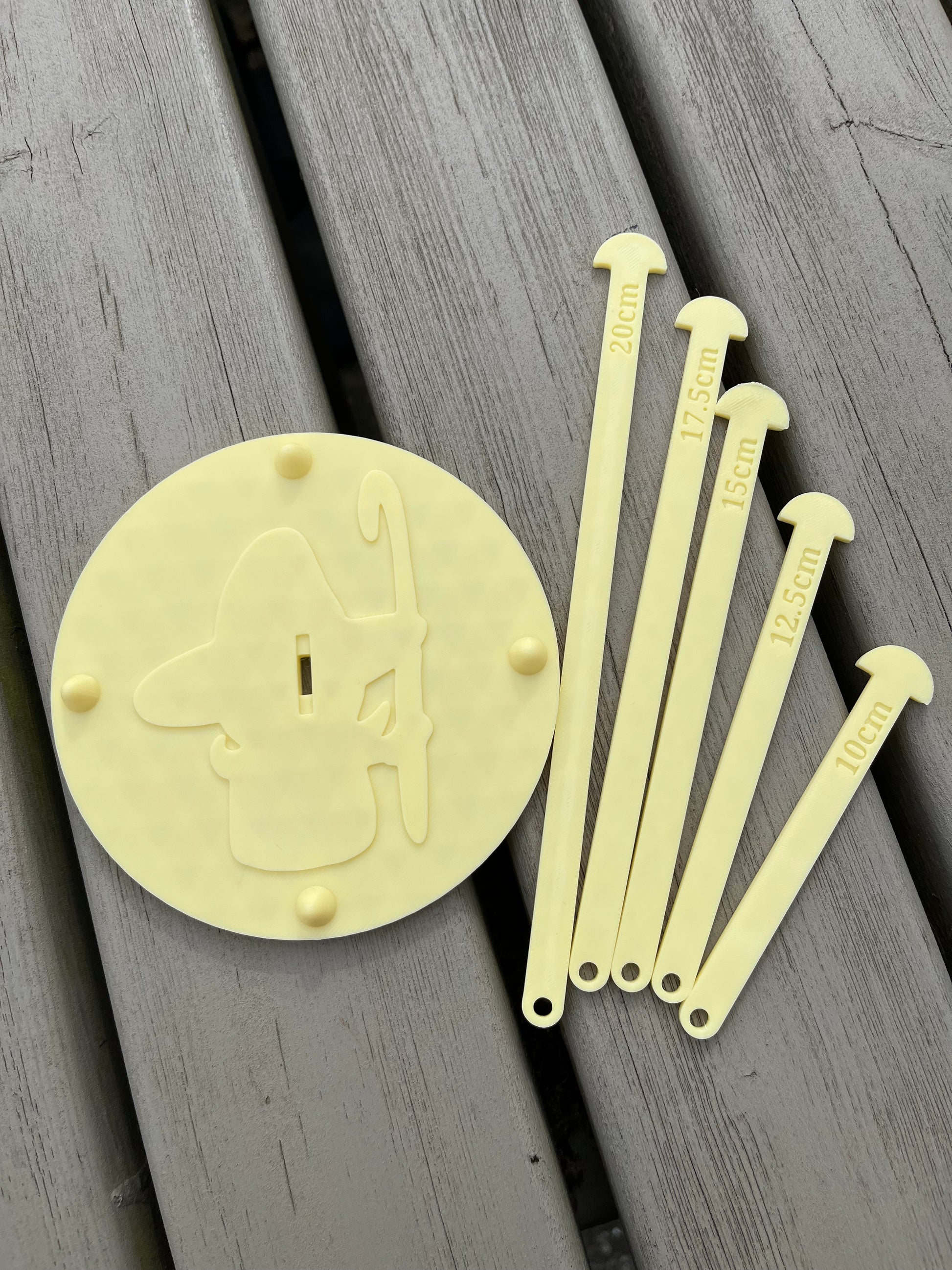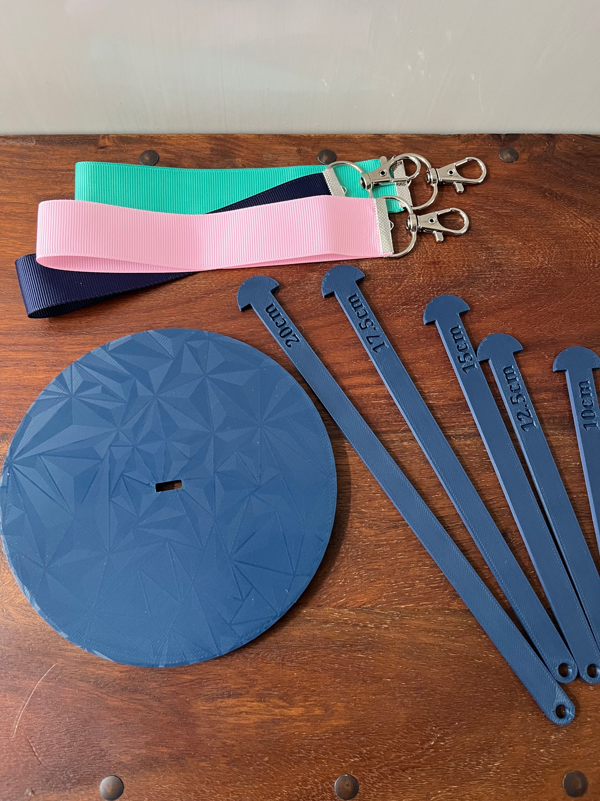This yarn holder kit consists of a 12cm base which has our logo embossed into the base and a choice of 5 upright pieces in 10cm, 12.5cm, 15cm, 17.5cm and 20cm. These are all 3D printed in house to a high standard and will be made in your choice of colour. We will also include a ribbon wrist strap with spinning lobster clasp attachment to keep your yarn holder spinning freely. Ribbon straps will be in a random colour but we will always make sure it’s a colour which compliments your choice of base.