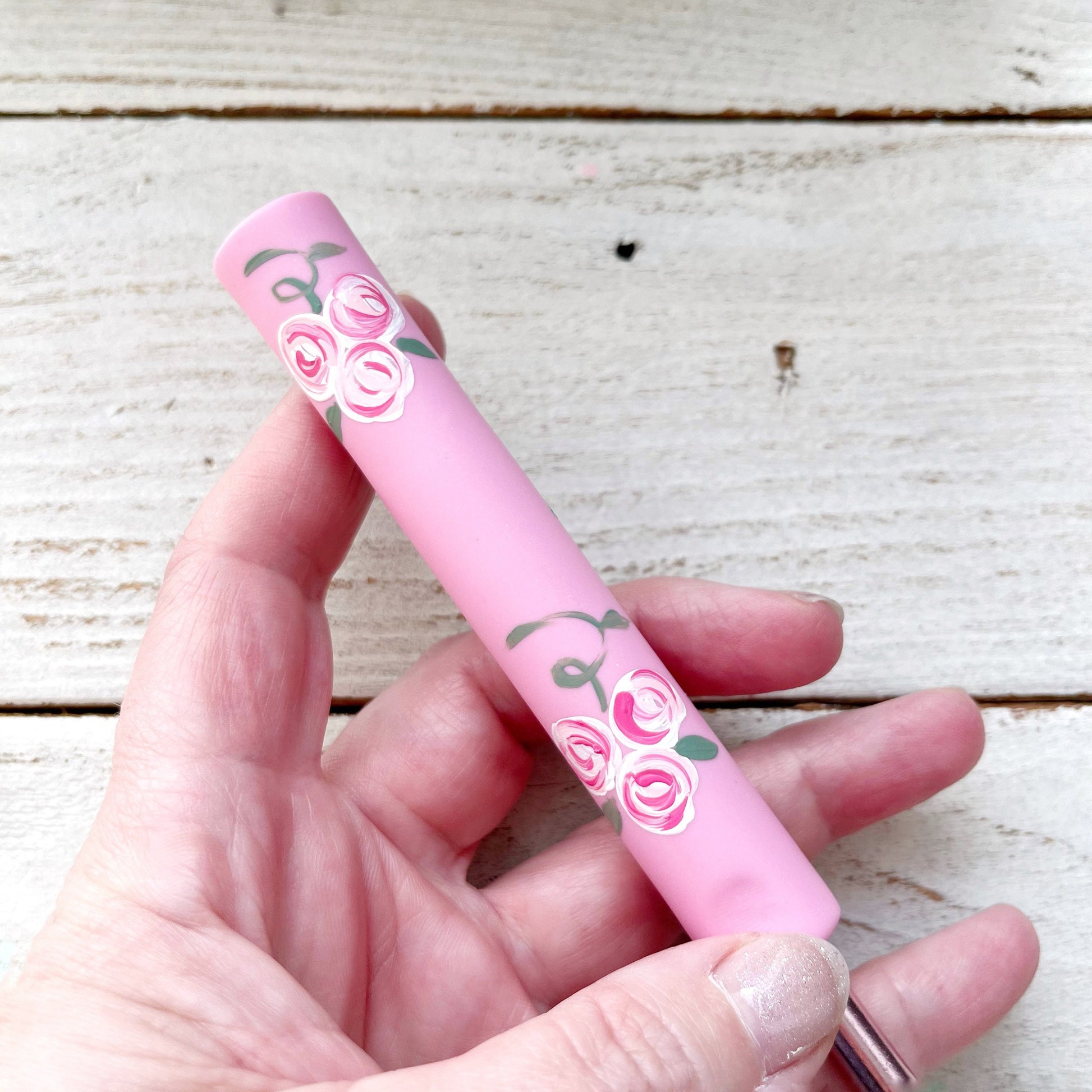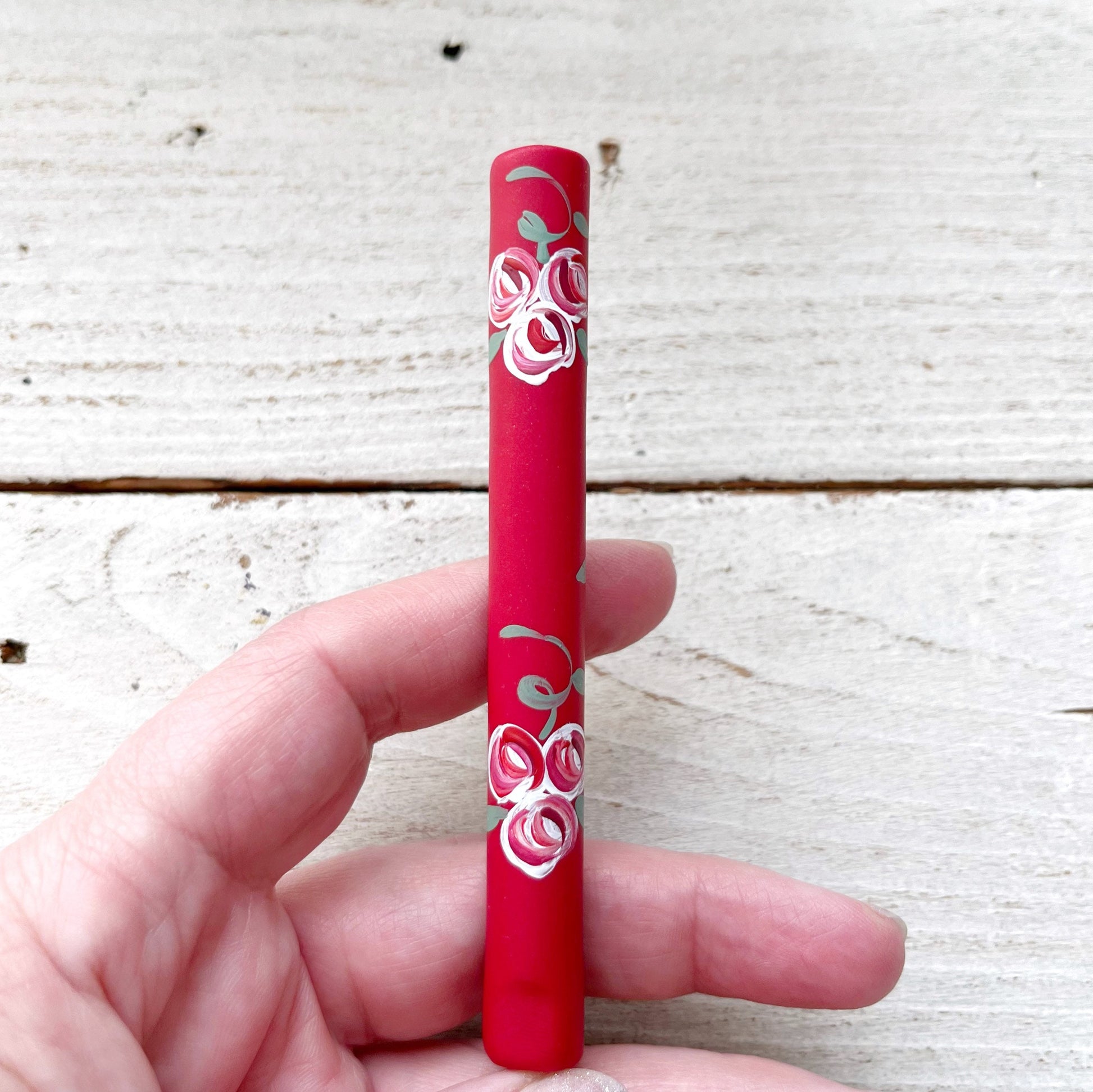 This is a tapered aluminium with a smooth polymer clay base. It has been hand painted with my best selling vintage rose design and sealed for protection. As with all of my hooks this one will have a shaped thumb rest and be size stamped for easy reference.
