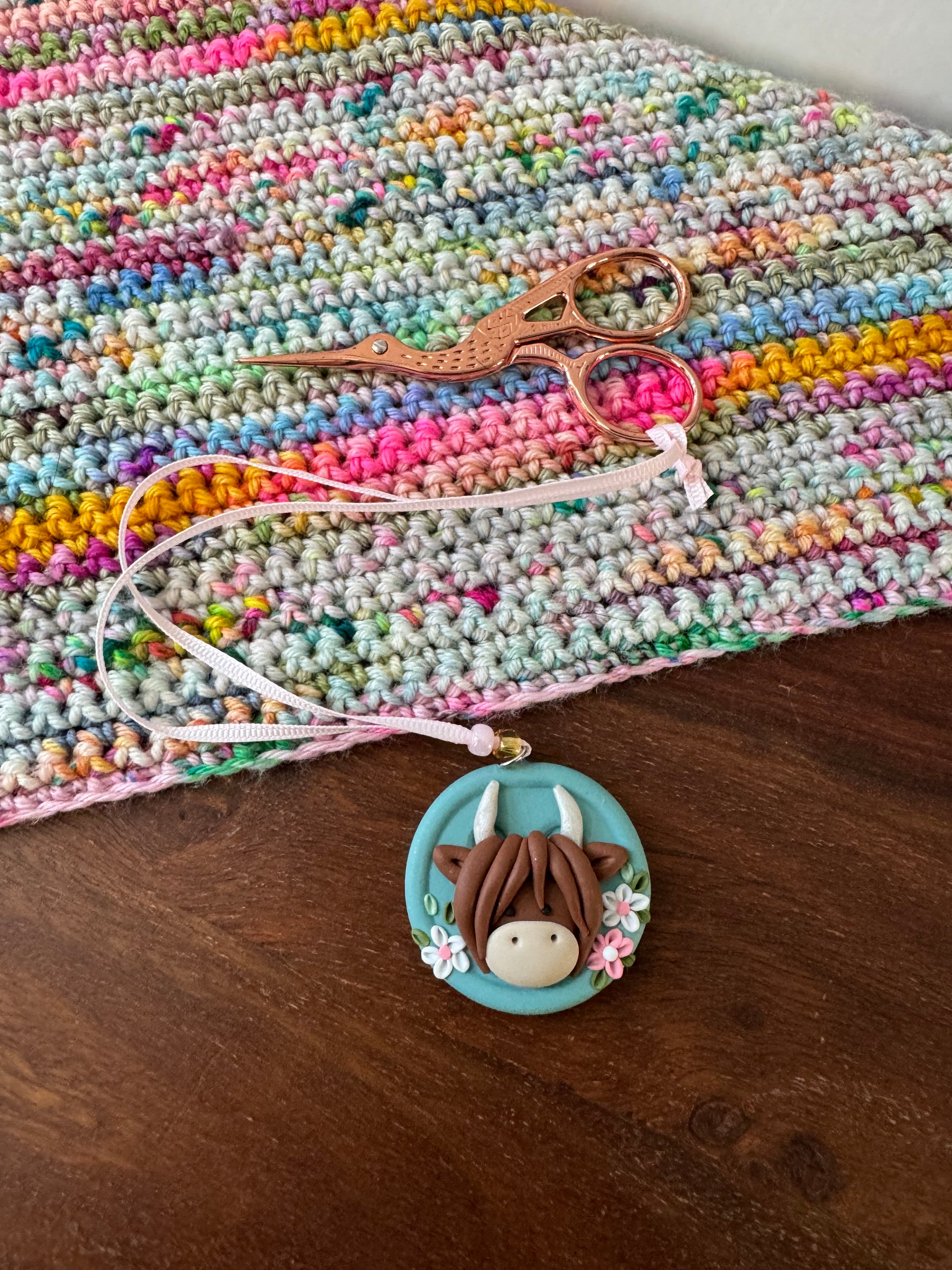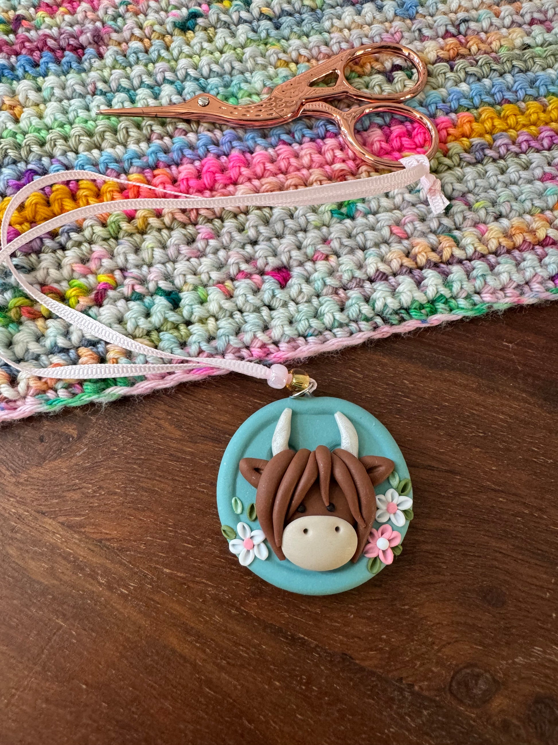 Everyone knows that pretty tools are essential for pretty projects and this highland cow scissor fob fits the bill perfectly.