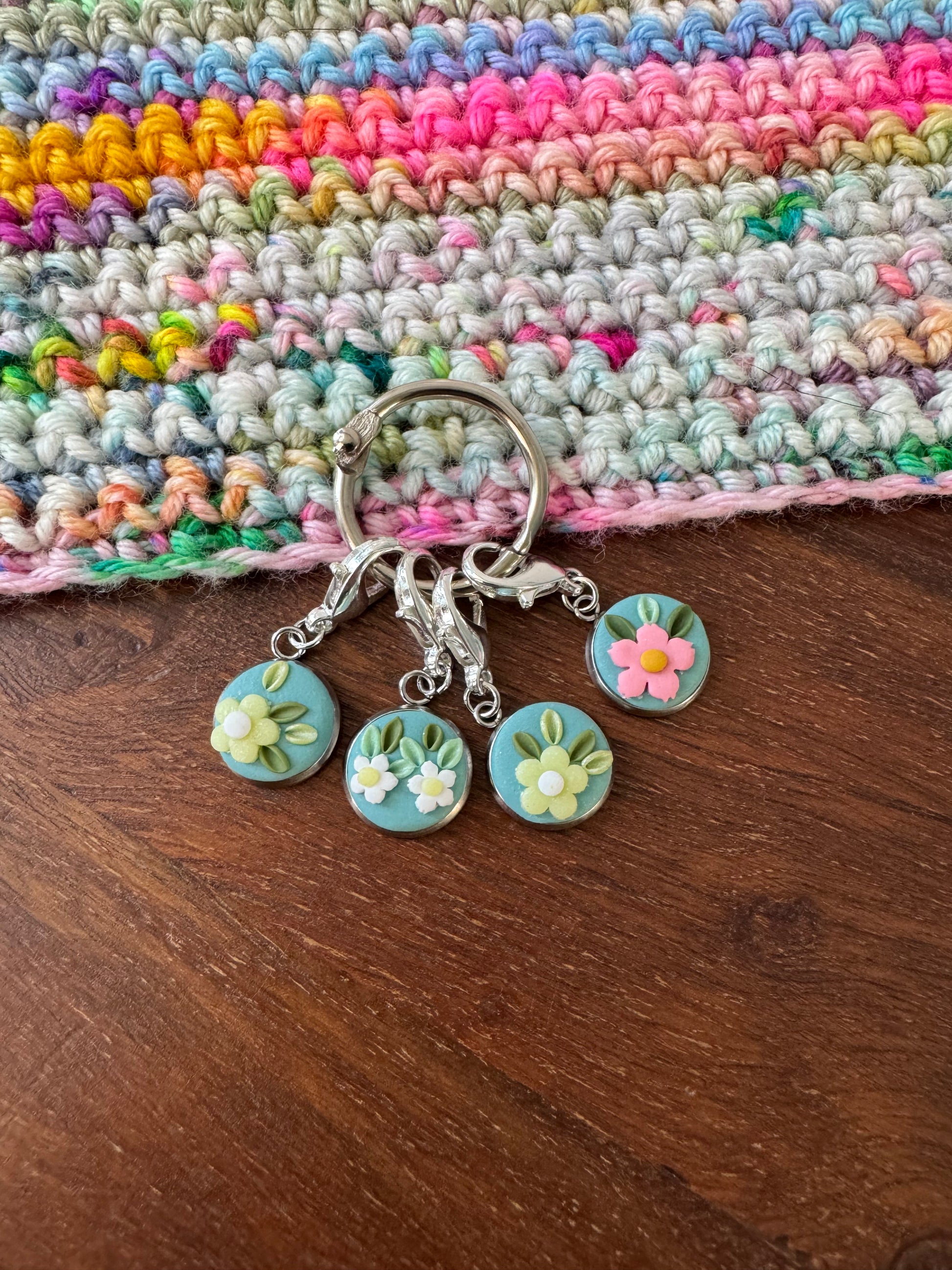 Follow your pattern with ease using these pretty and practical handmade polymer clay flower stitch markers.