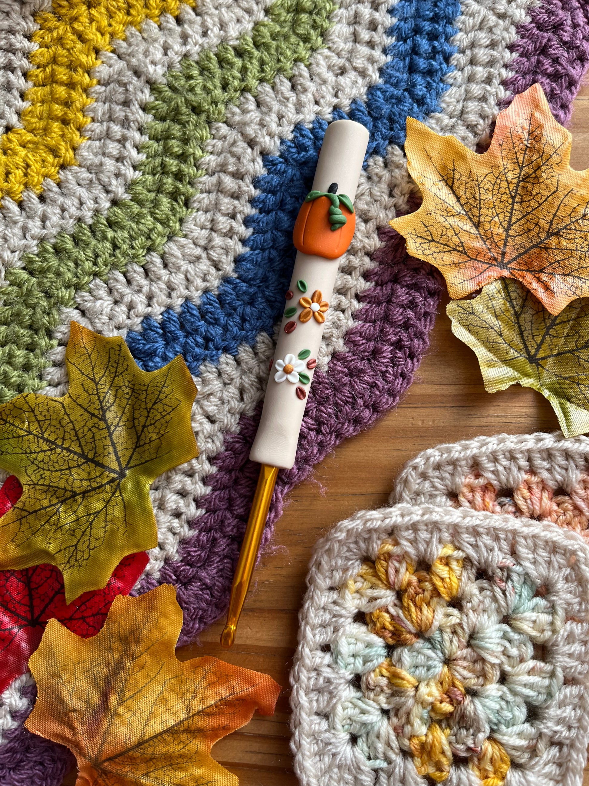 Get ready for autumn with this gorgeous handmade pumpkin crochet hook.