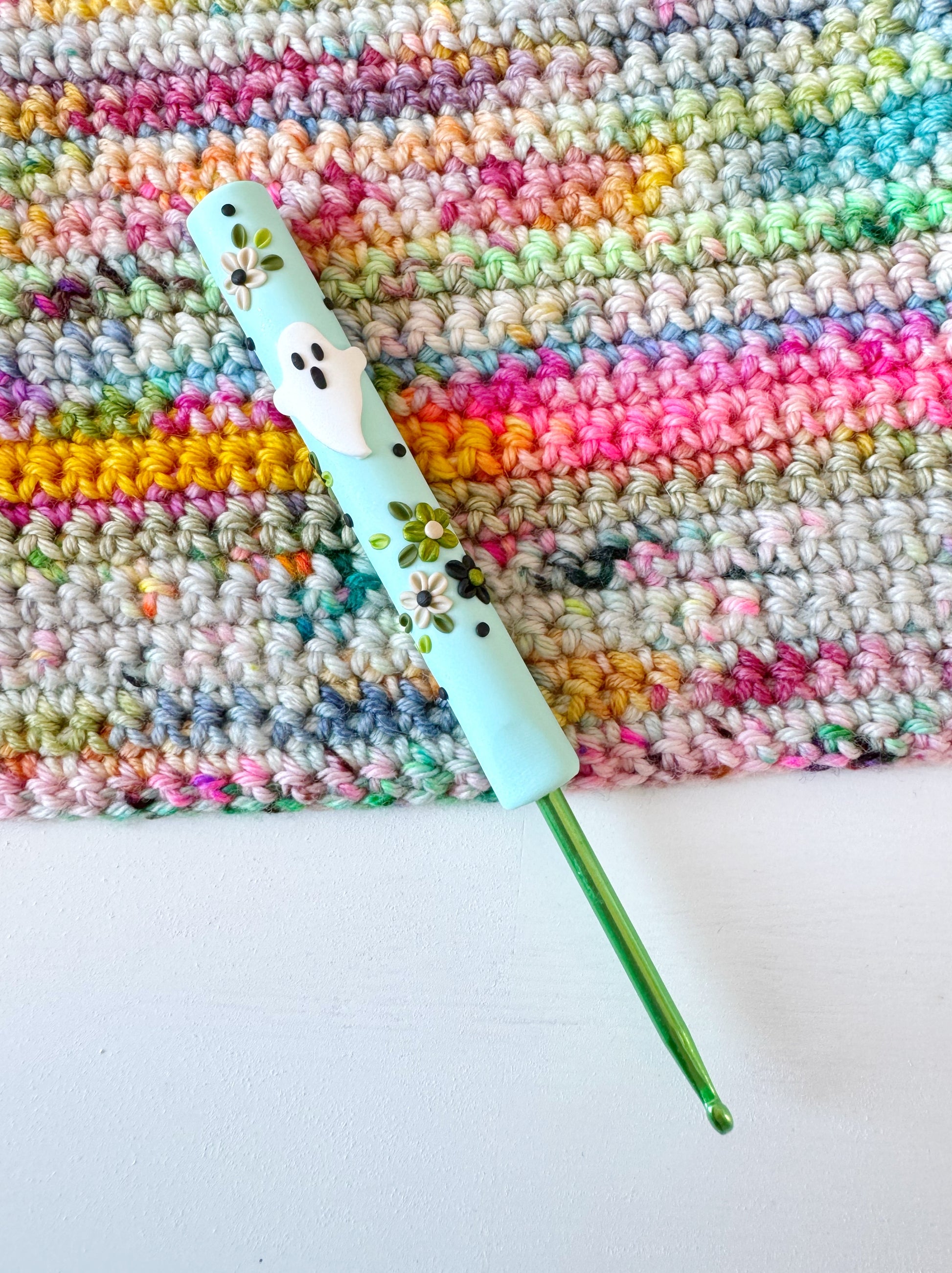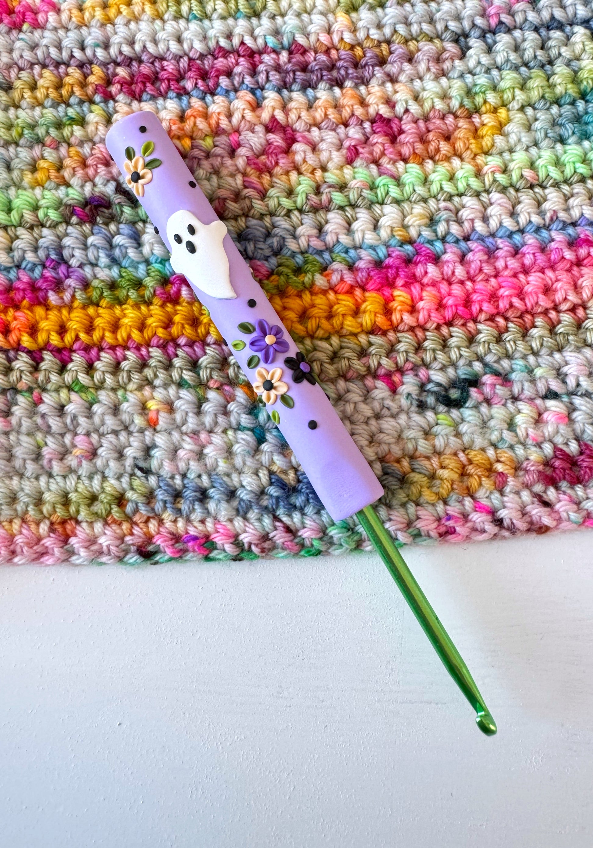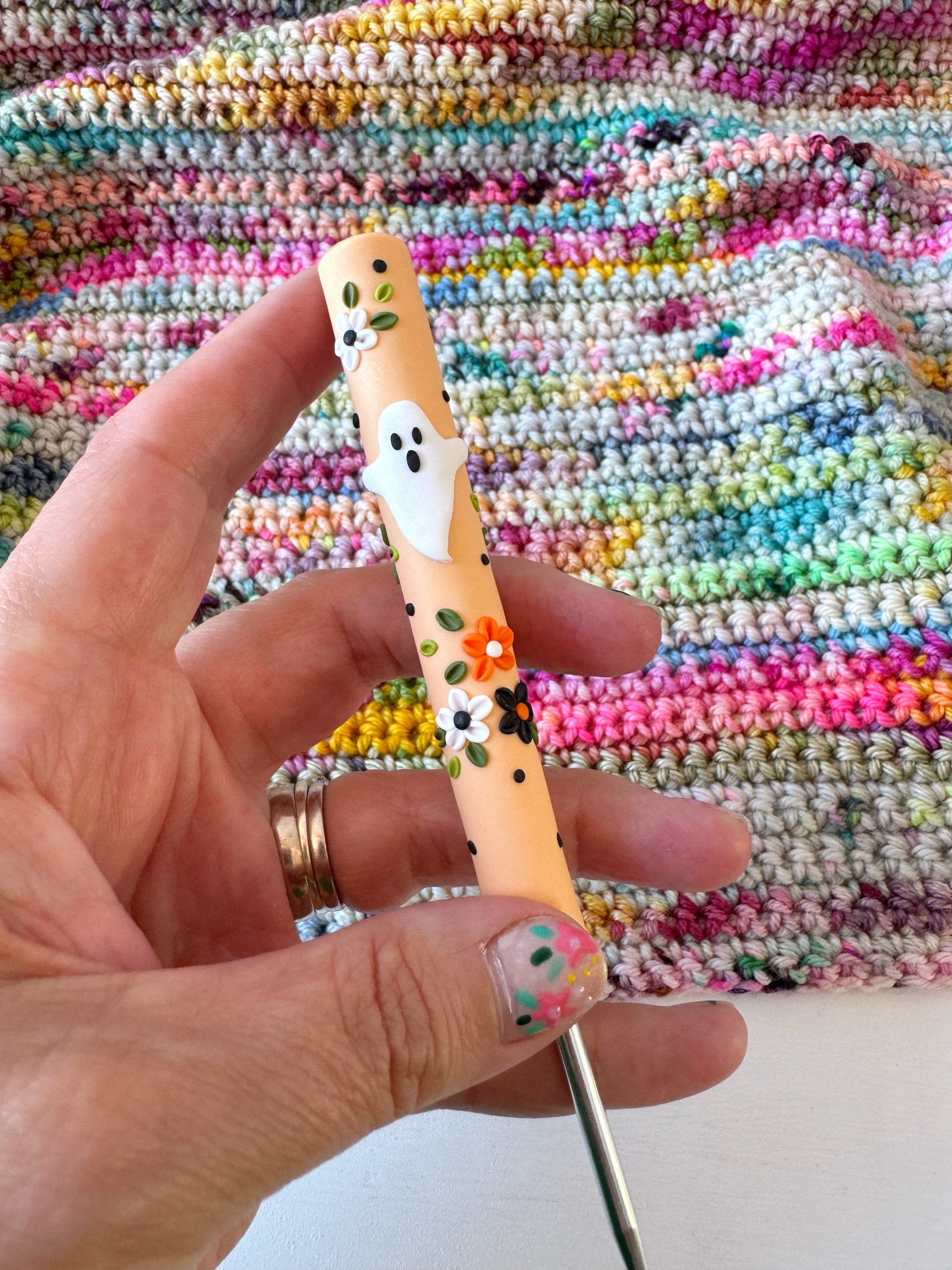 Spooky season is almost here and this cute ghost crochet hook is perfect for your halloween projects.