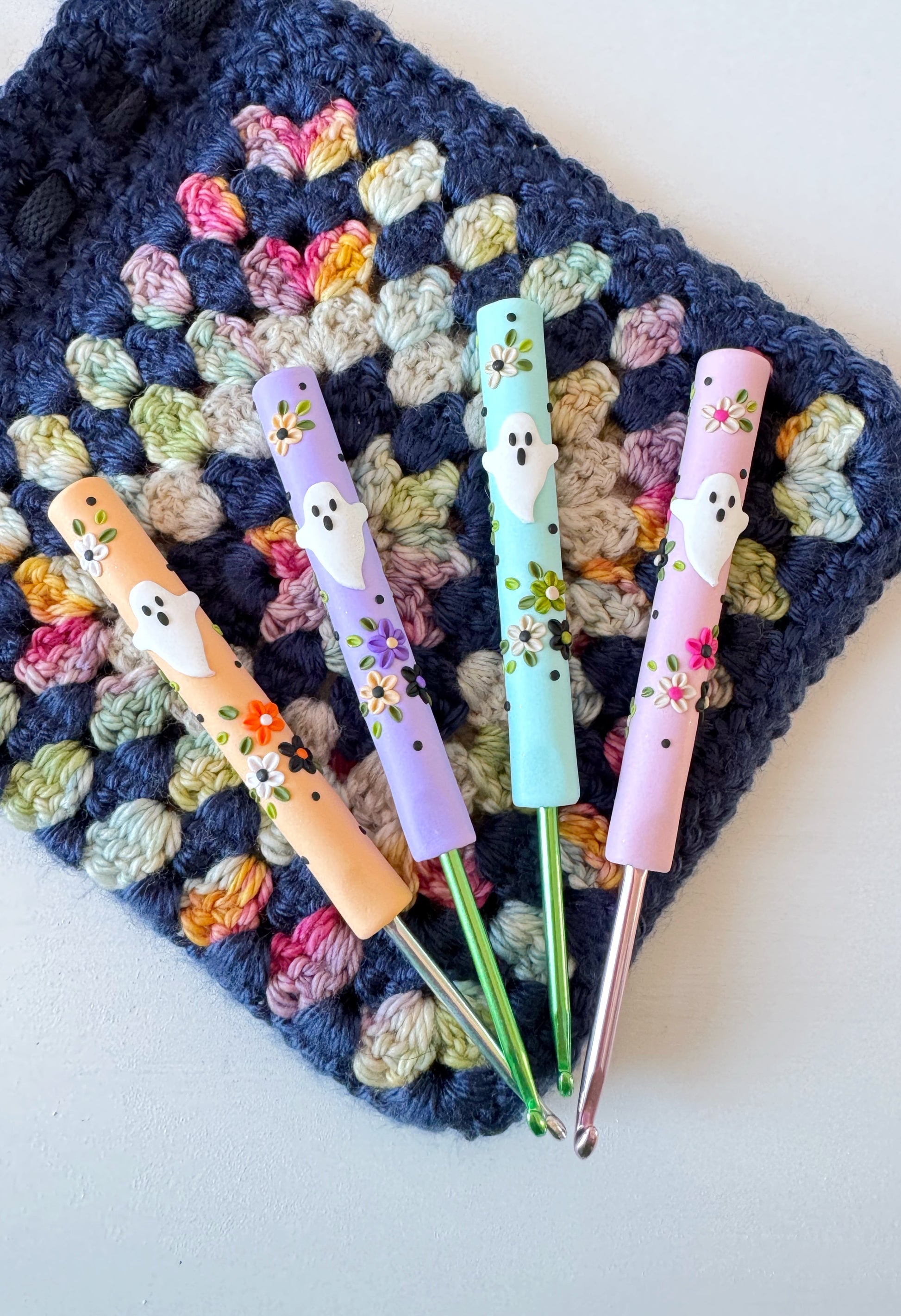 Kawaii Ghost Polymer Clay Crochet Hook, Ergonomic Pastel Halloween Crochet Hook
