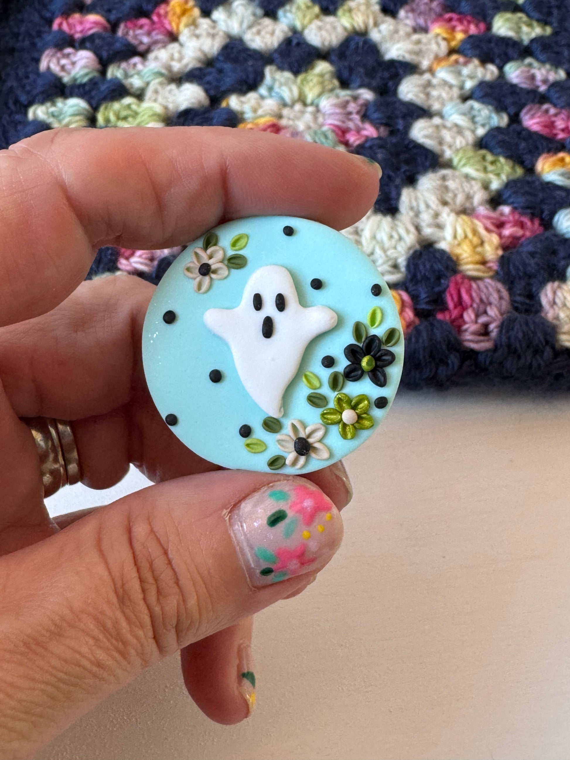 My little kawaii ghost needle minder is perfect for your spooky season stitchery.