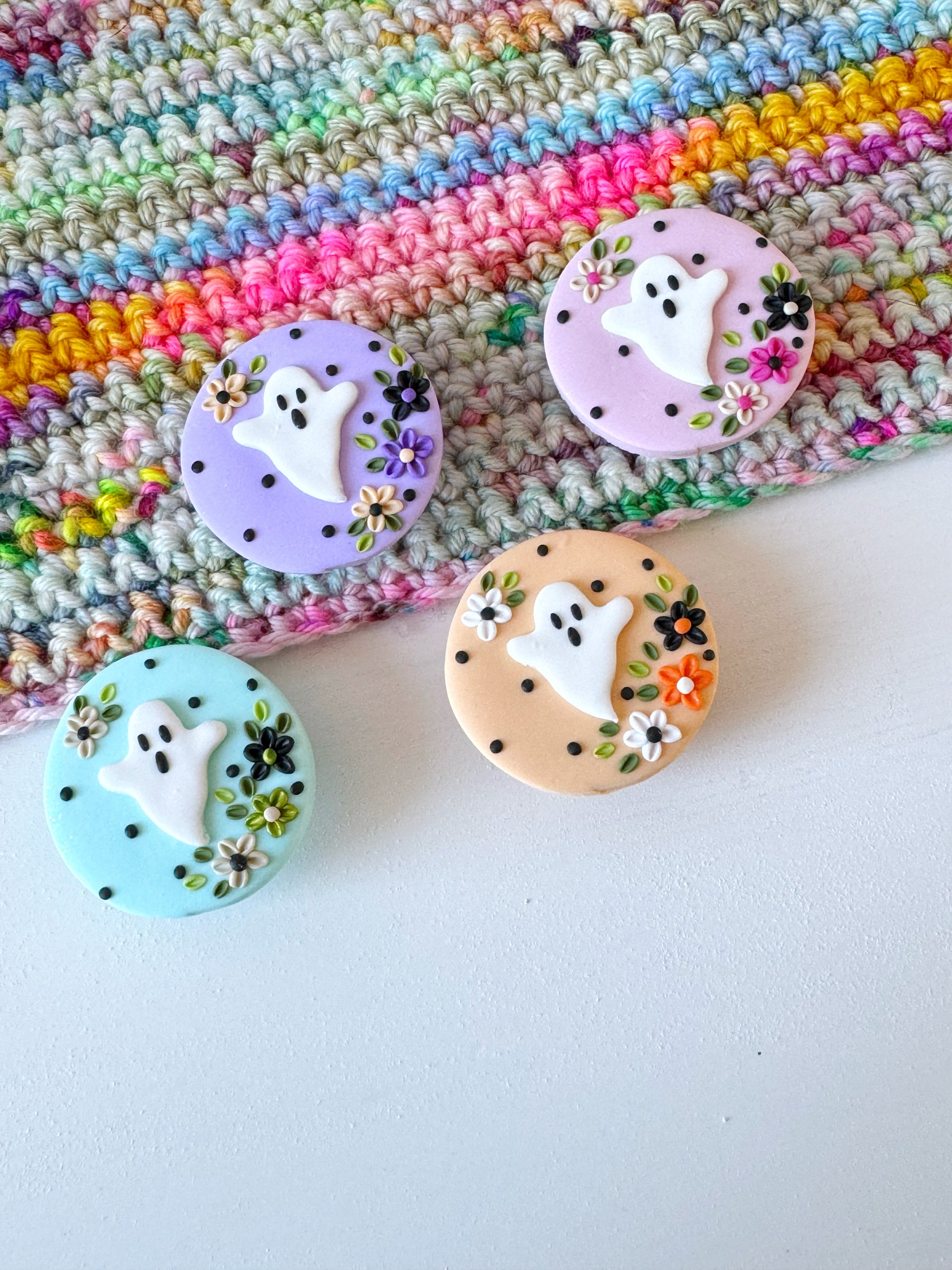 This minder features an adorable little ghost surrounded by my signsture flower and dot pattern. Each one is handmade and unique, something to treasure. You can choose your base colour from the options in the dropdown menu. We love the modern feel these fresh pastels give this design!