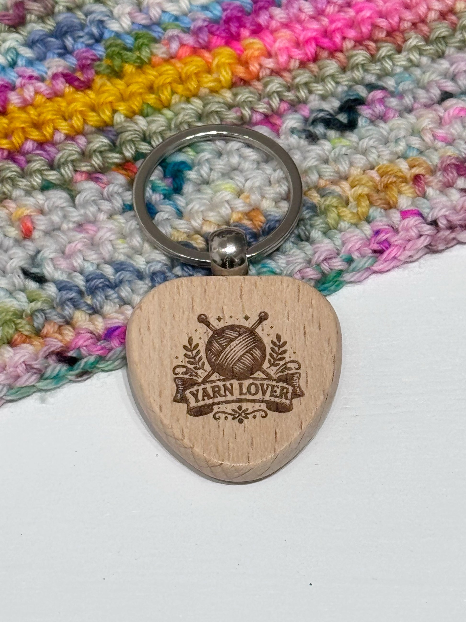 Wooden Heart Keyring – Yarn Lover Accessories for Knitters and Crocheters
