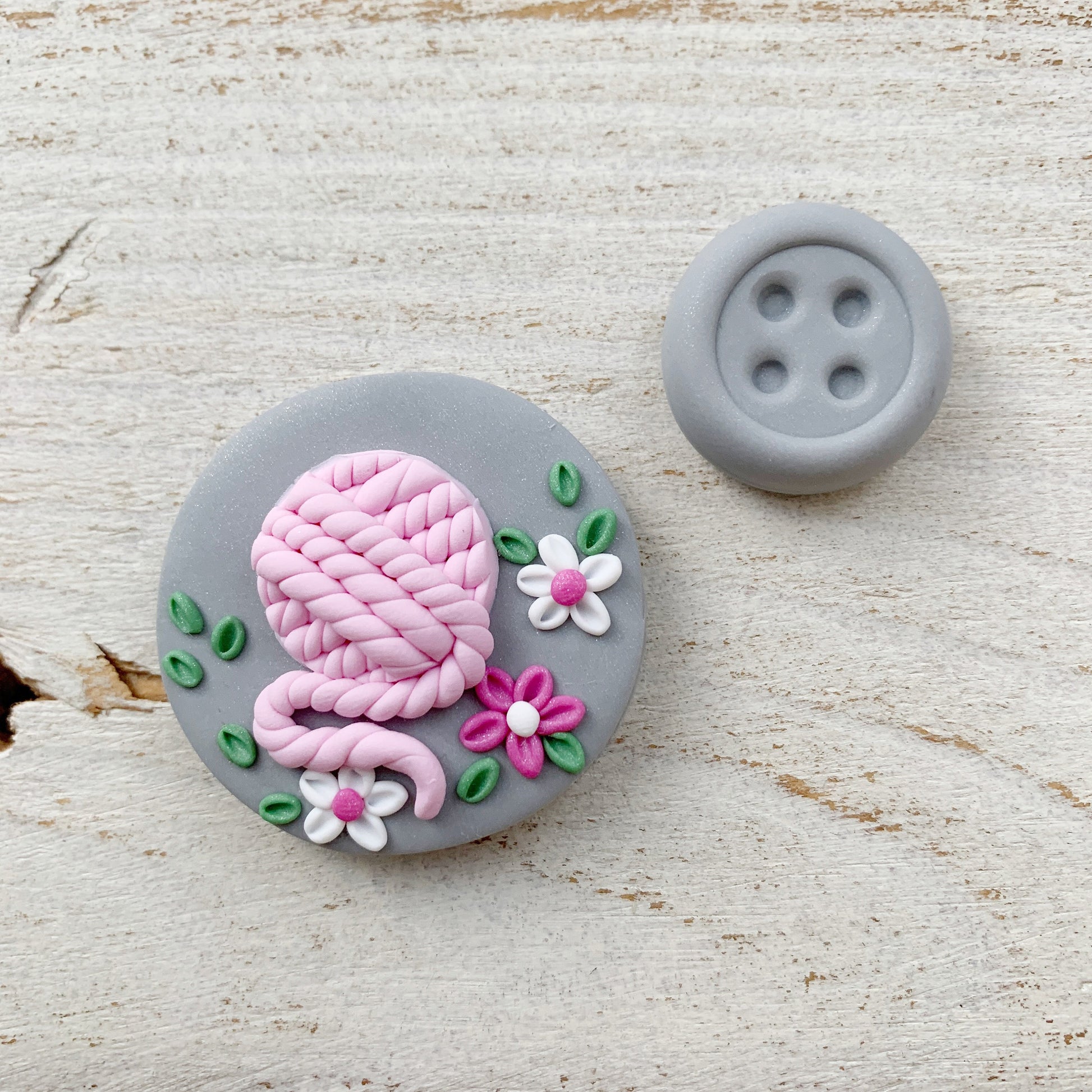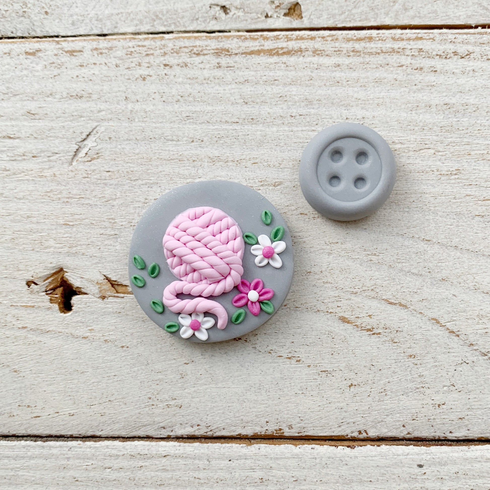 This needle minder features a cute baby pink yarn ball with my signature tiny flowers.