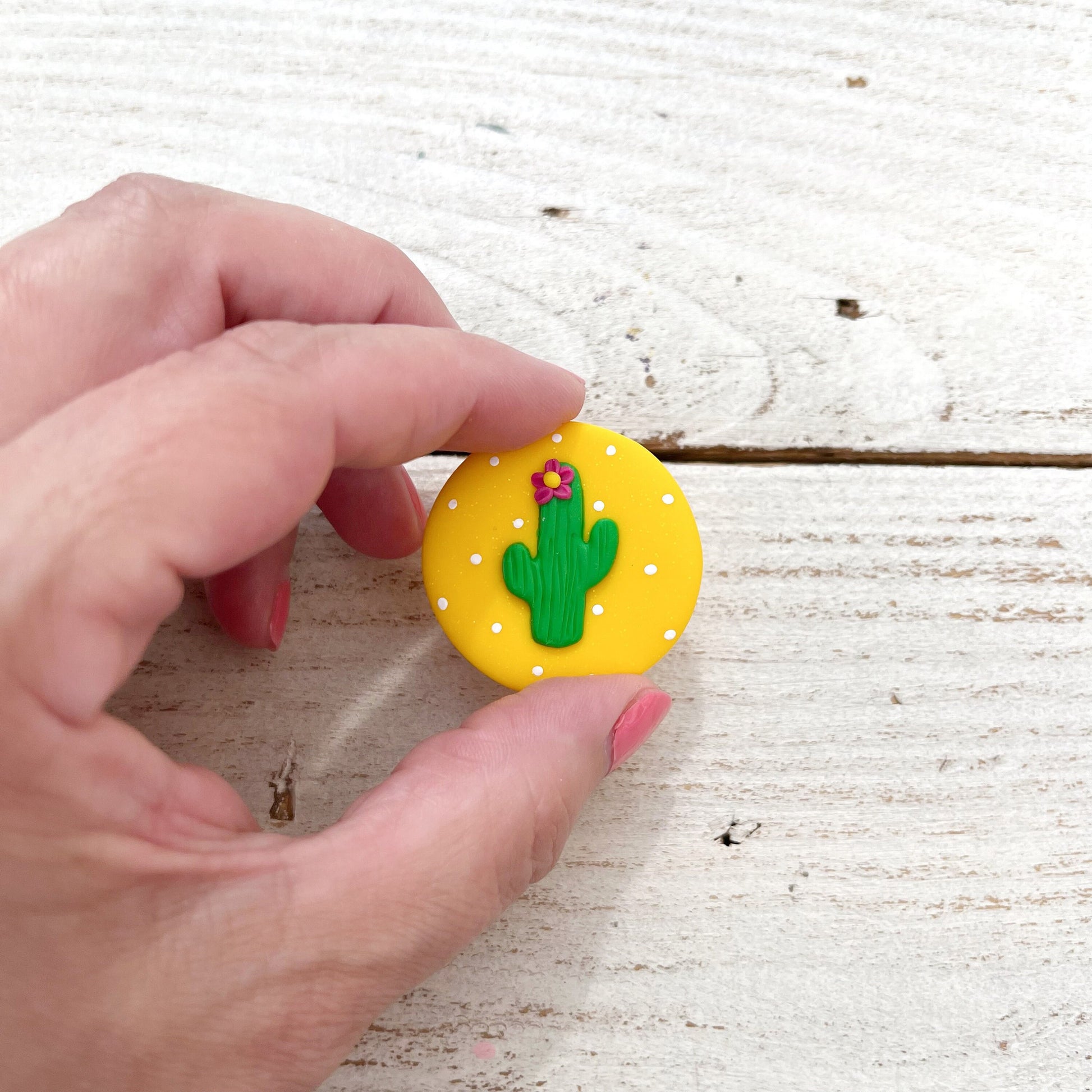 This needle minder features a pretty cactus design on a yellow base. It is finished with my signature tiny flowers and dots and is sure to brighten your day each time you use it! This needle minder is roughly 3.5cm wide.